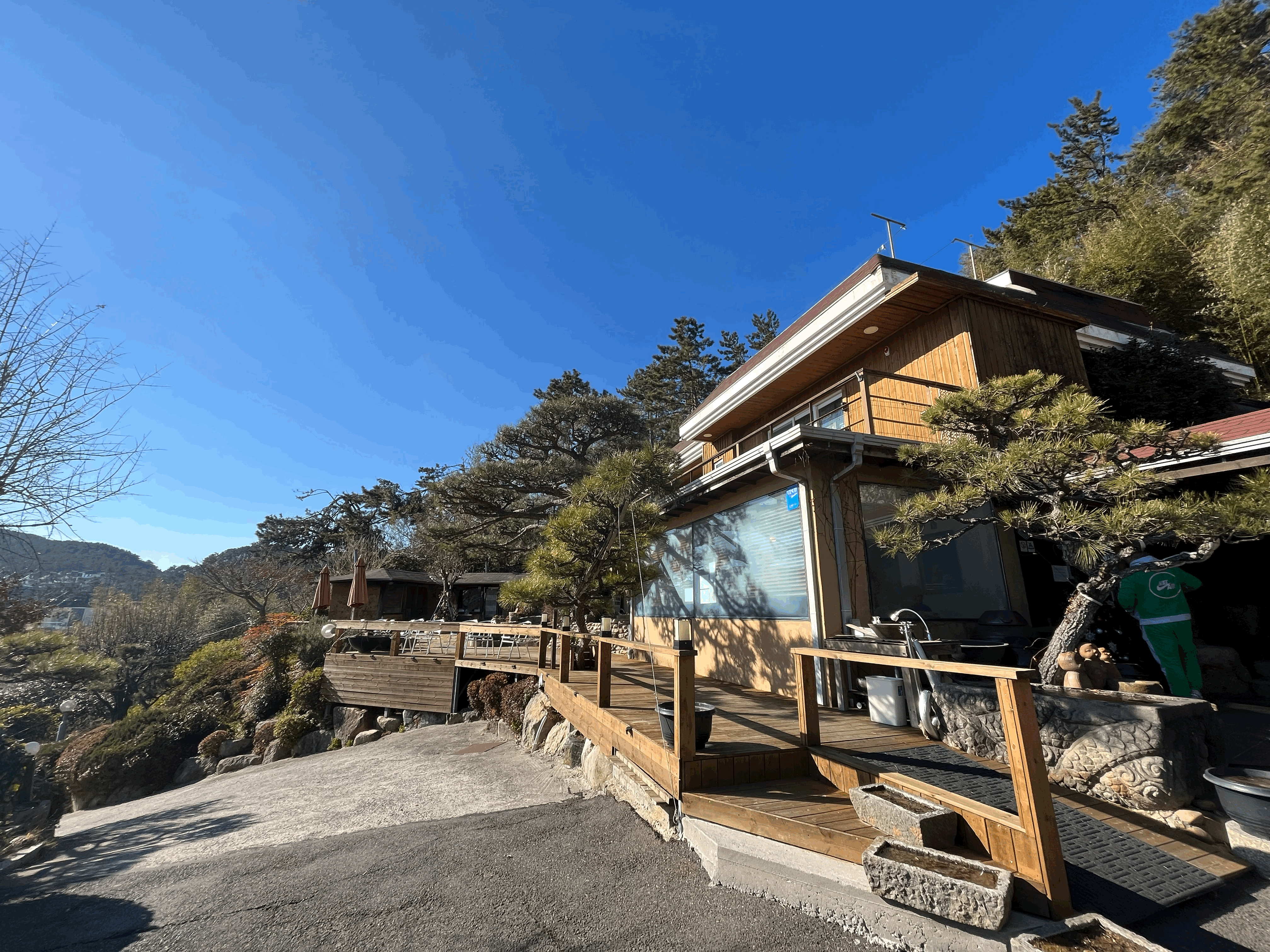 식당으로 올라가는 길에 아래로 본 모습 입구건물 (식당)