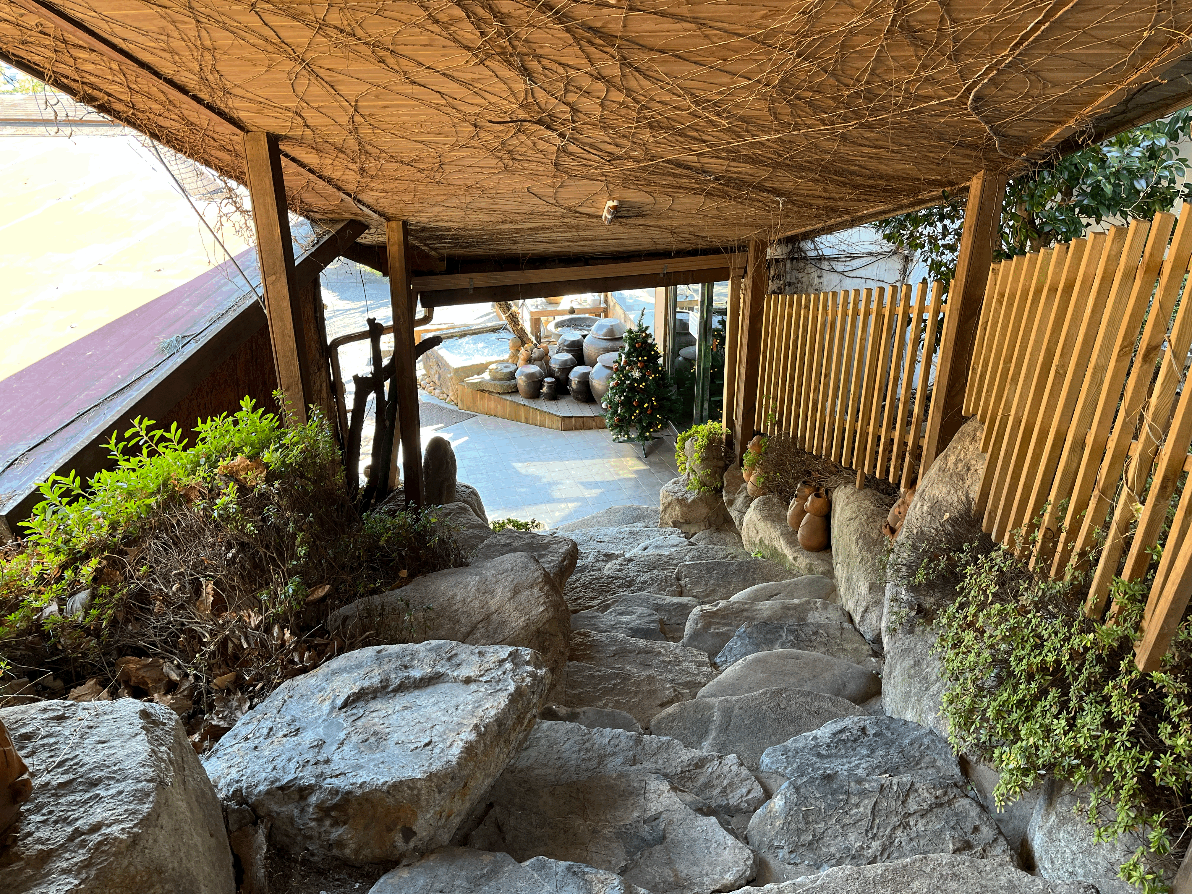 단체석과 카페를 가는 돌계단 토암 식당 단체석
