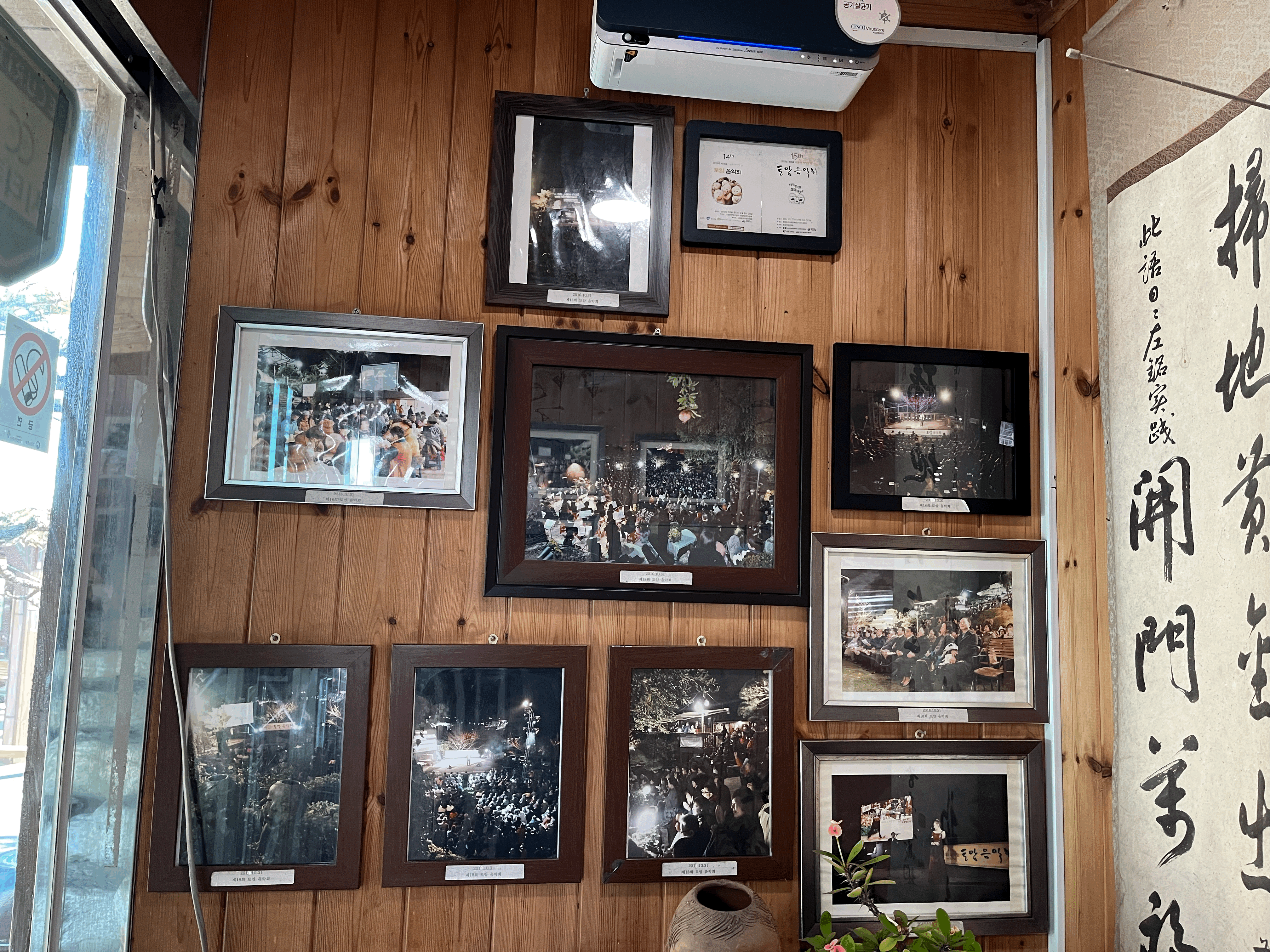 가기를 들어서면 입구에 사진들이 전시되어 있다. 하나하나 보지는 못했지만, 과거의 행사를 했던 사진들이다. 야간에도 대형의 천막과 테이블을 두고 초대를 하신것 같다. "토암 음악회"가 주로 열렬린것 같다. 입구에는 좌측으로 보면 대형테이블이 있고, (좌식) 우측으로는 계산테이블과 식당이 보인다. 안쪽에는 좌식으로 되어있는 테이블이 여러 개 있었다.