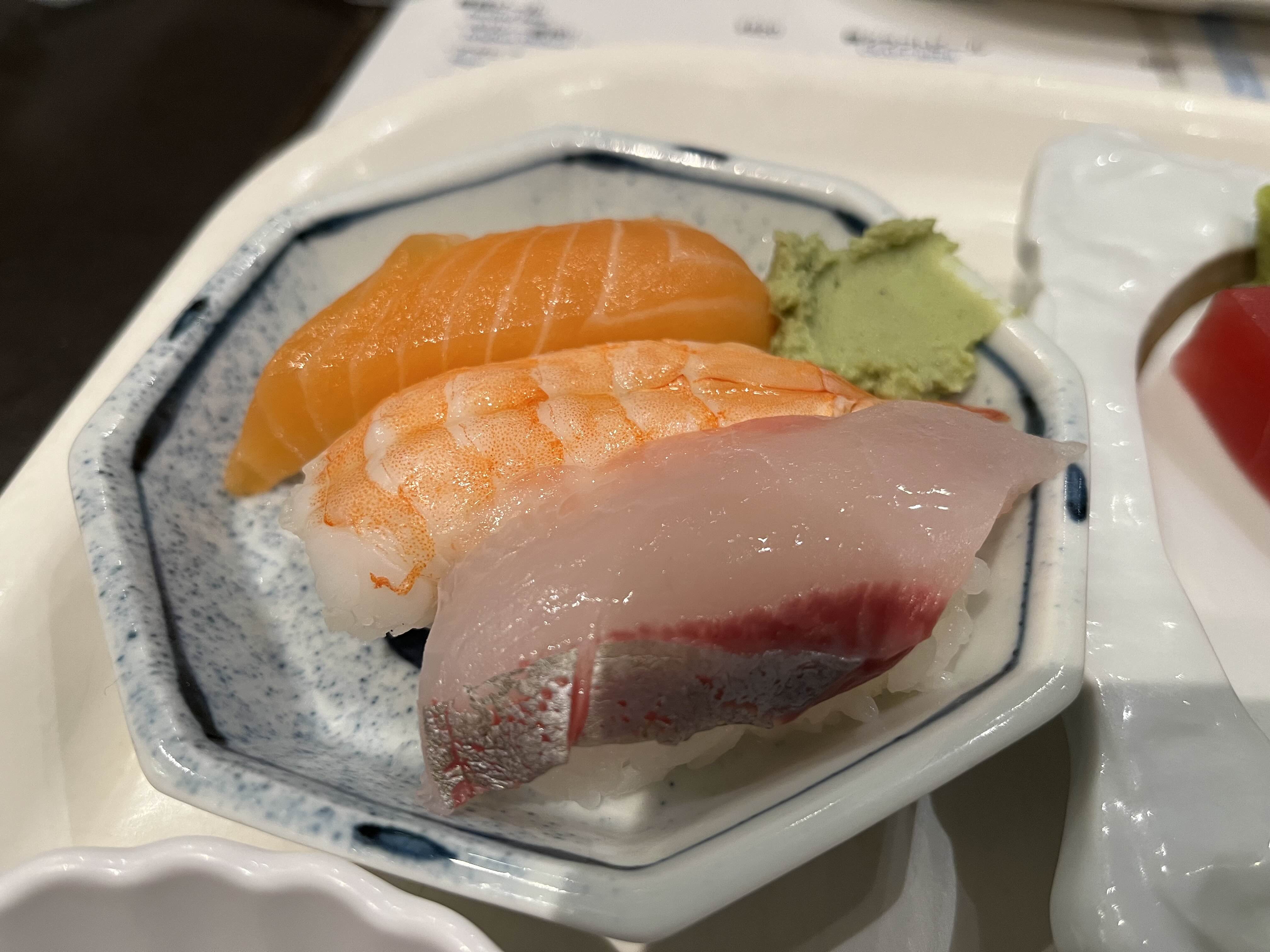 다양한 음식들이 있었고, 매번 비닐장갑을 끼고 음식을 담아야ㅜ하는 부분은 조금 불편했다. 위생상 어쩔수 없으니.. 내가 여러종류의 음식을 먹었지만 특히 기억에 남는 것들만 보면 스시는 사실 조금 부족한 느낌..