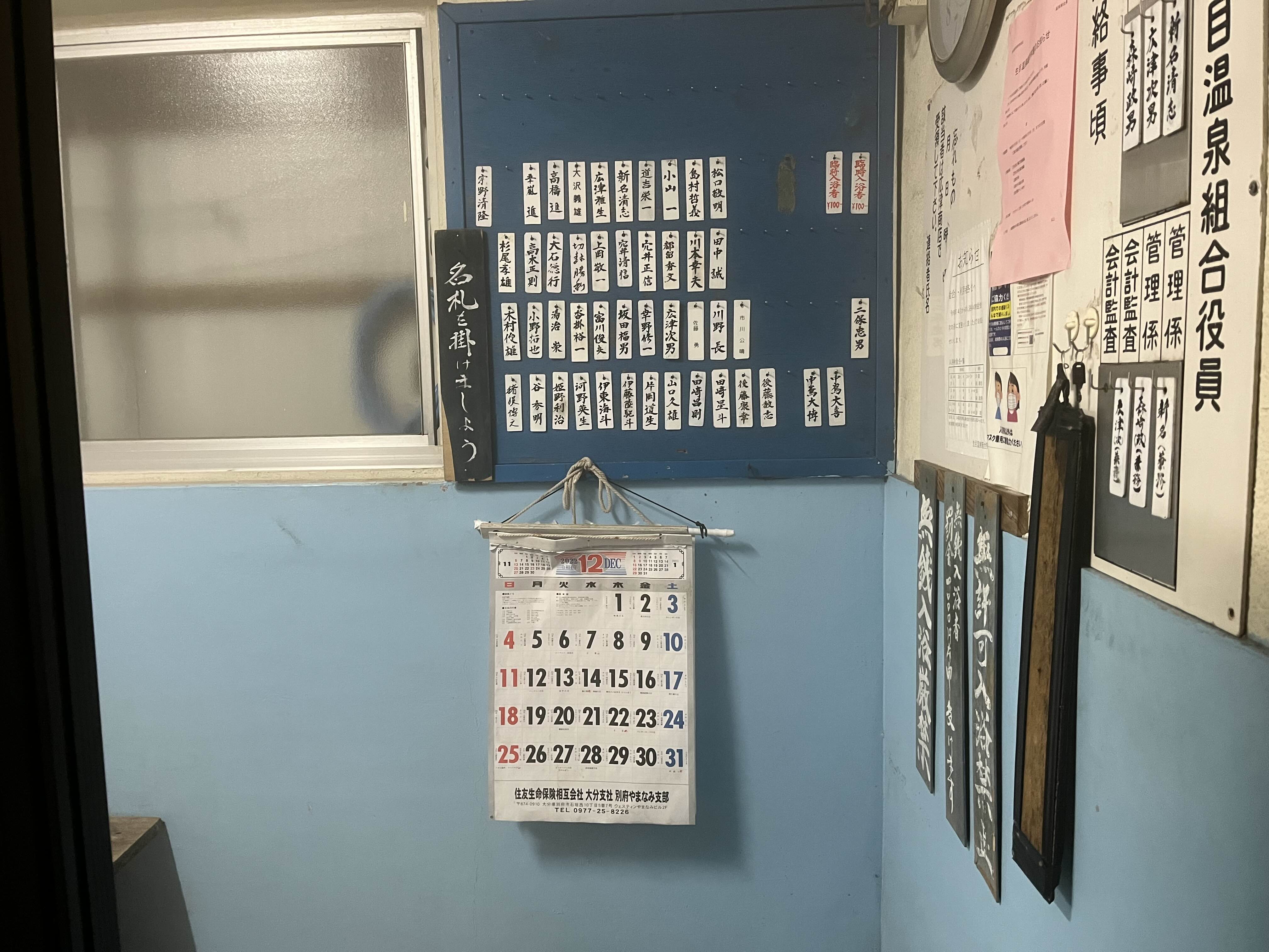 그냥 쌩도로 옆에 위치한 ikime onsen 내부는 이렇게 생겼고, 운영하시는 분들과 동네 조합의 명단이 붙어 있었다. 누군가에 의해 운영이 되고 있었다. 남녀 구분된 입구가 단촐하다.