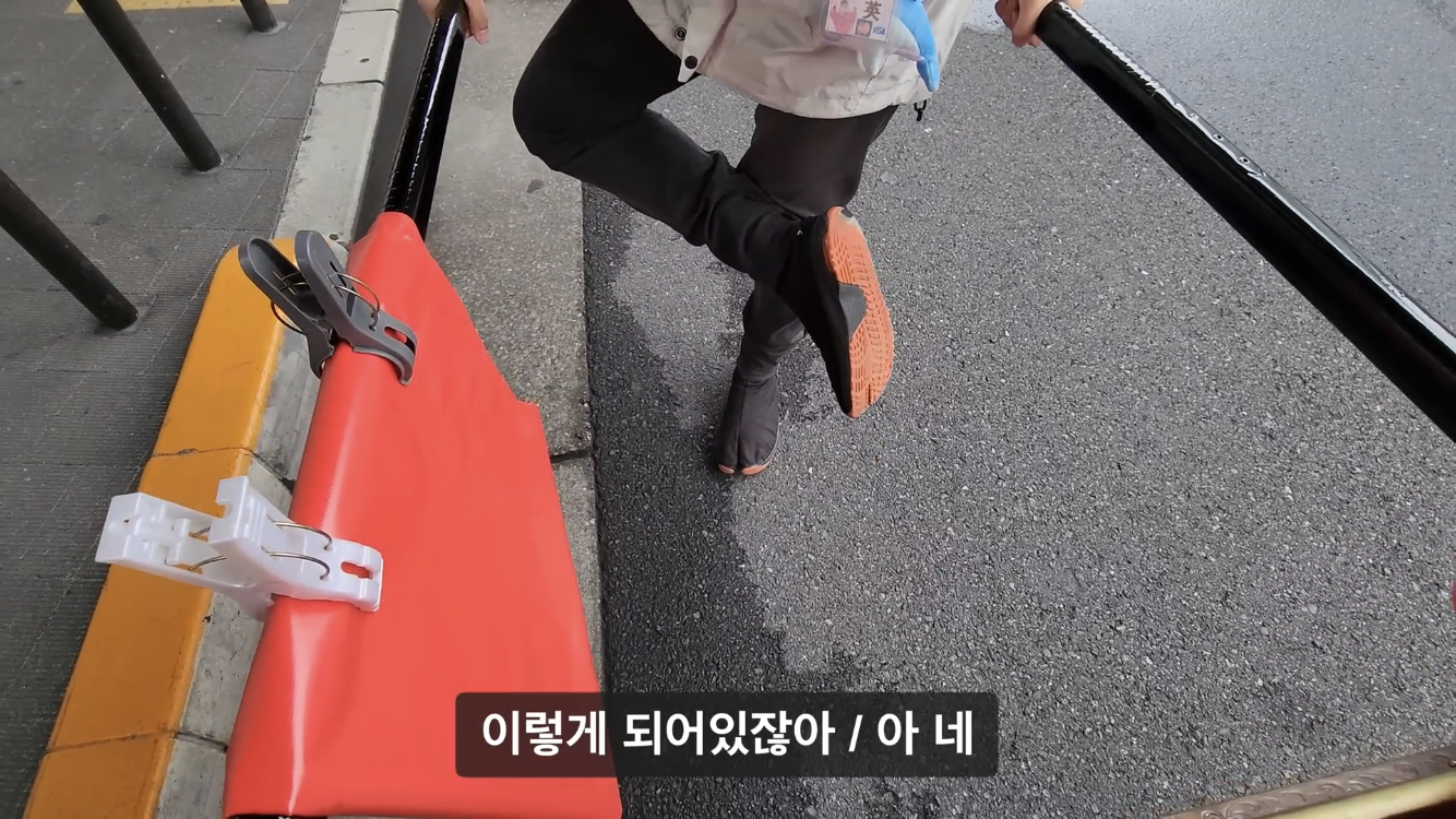 인력거 아이템신발이 궁금했는데 발바닥은 고무로 되어있고 약간 발렌시아가? 느낌의 발구락 디자인. ㅋ