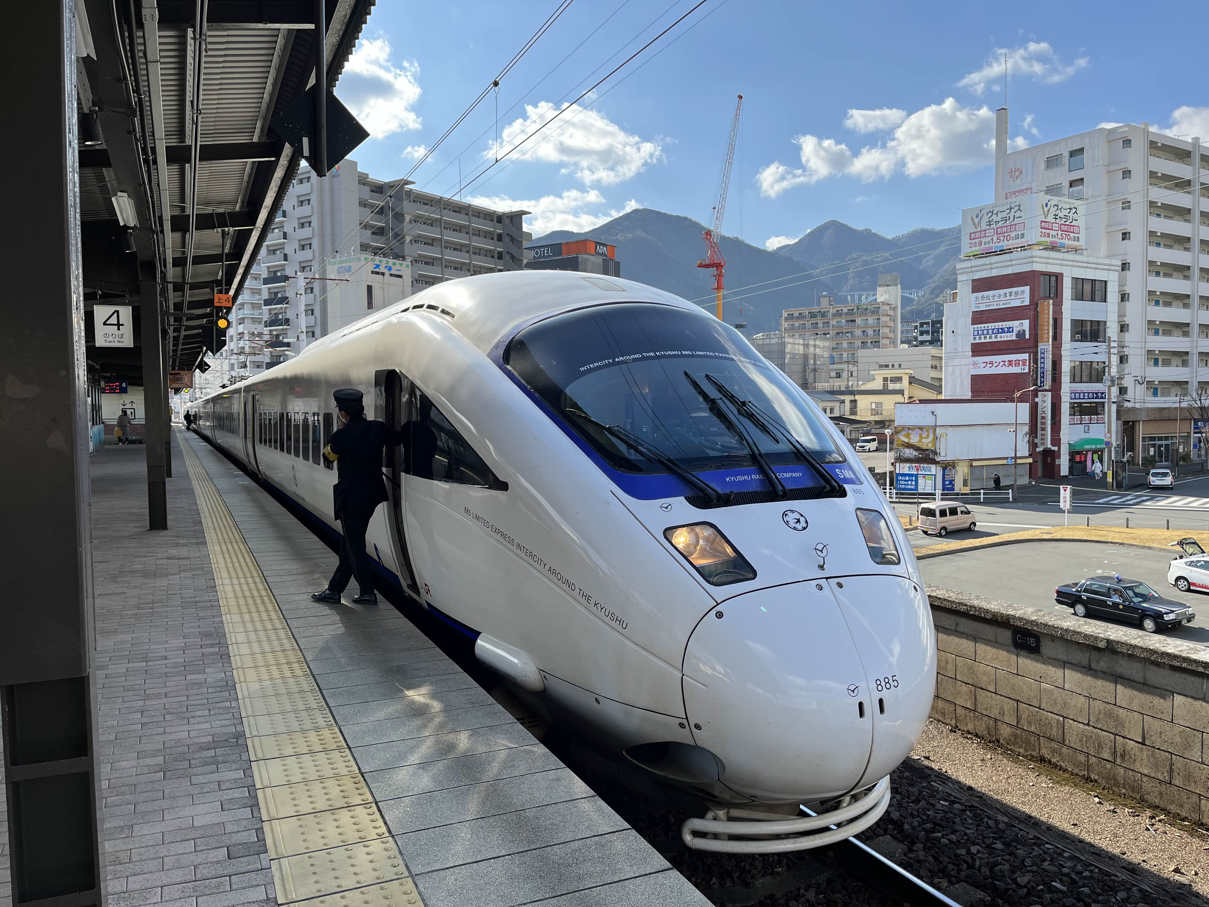 소닉이 잠시 정차후 다시 출발.(아마도 벳부다이가쿠역은 정차하지 않을듯)