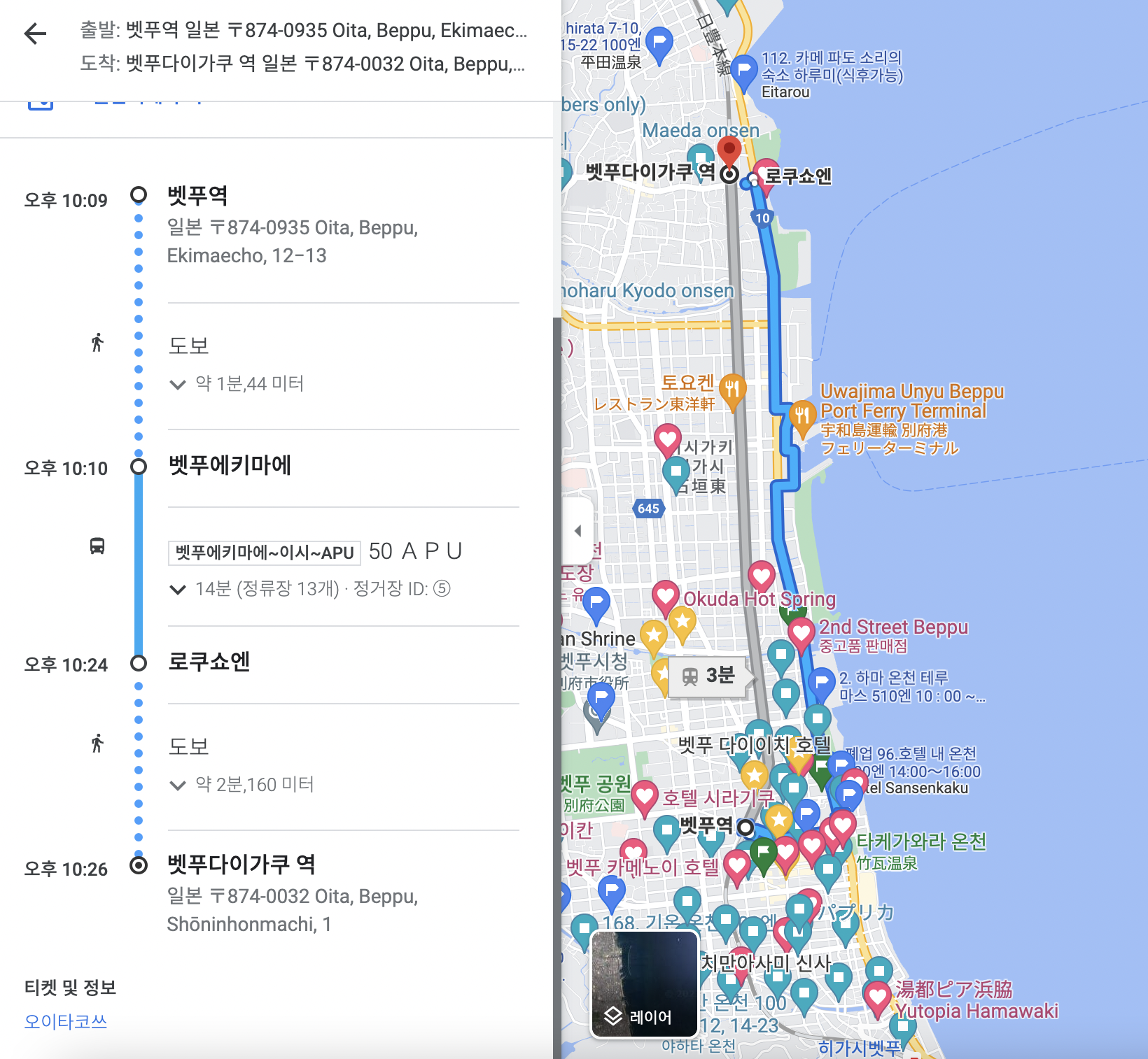 가장쉽게 검색하는 방법은 구글맵을 이용하면 어떤시간에 어디로 가는 열차인지 모두 알려준다.