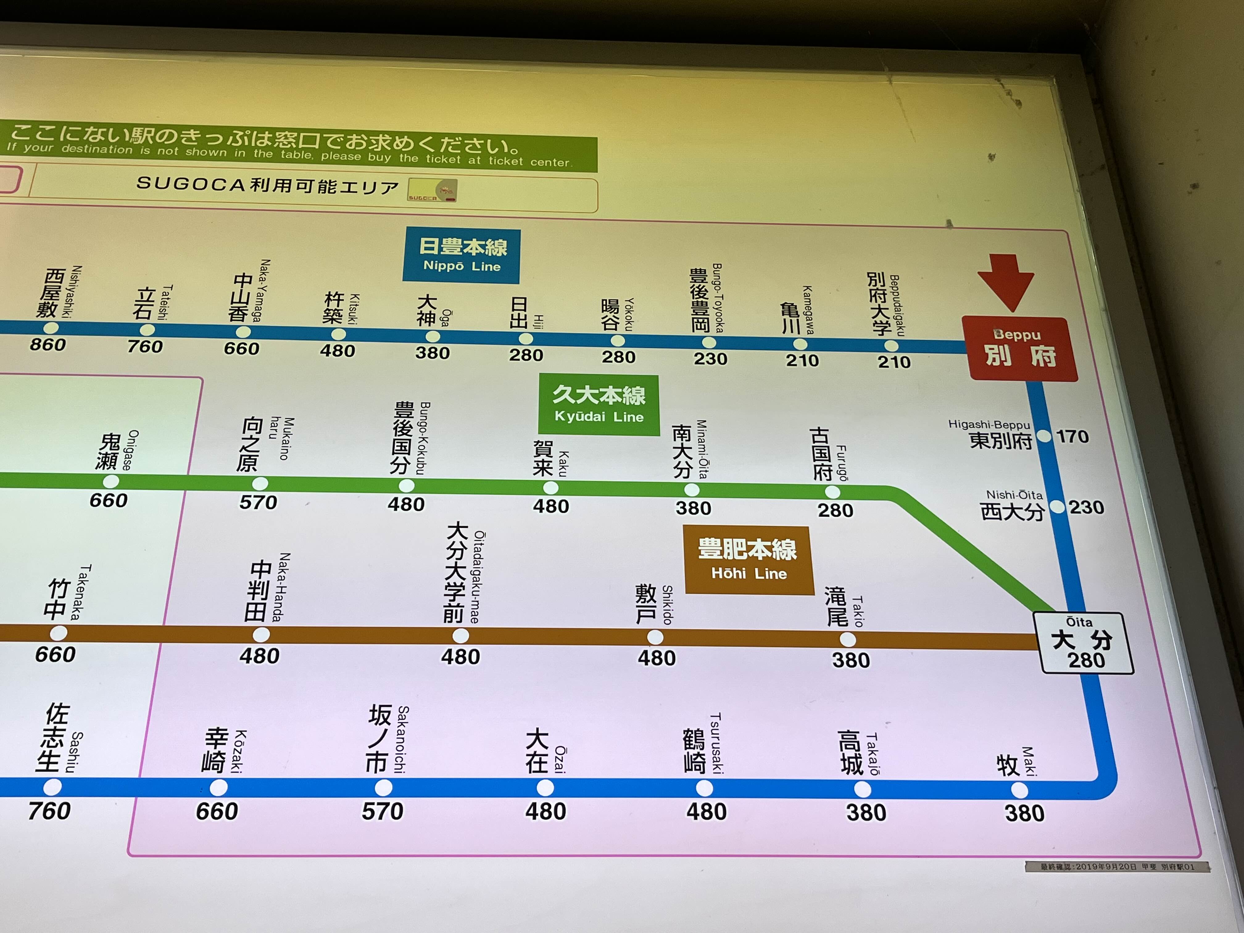 오늘의 목적은 벳부역에서 벳부다이가쿠역으로 가서 온천박물관을 갔다가. 위쪽으로 쭉 올라가서 鉄輪温泉 칸나와온천지역을 일부 둘러볼 예정 그중에 가장 첫 단계인 기차를 타보자. 기차가 아주 아주 종류가 많지만.