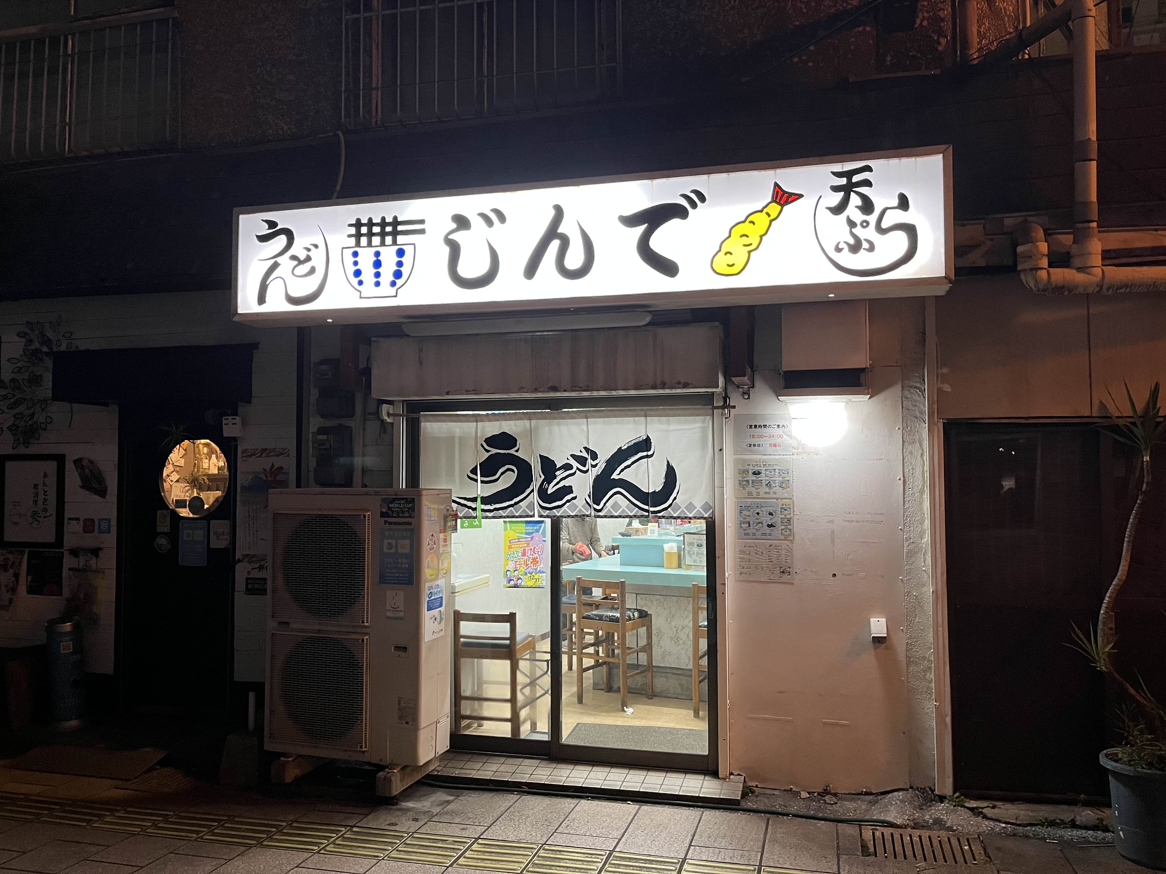 숙소에 가깝다는 이유로 그리고 늦은시간에도 운영을한다기에 바로 가보았다. Kokage와 같은 건물에 있는 우동집 진대라고 읽는것 같고, ”진짜“라는 의미인듯.