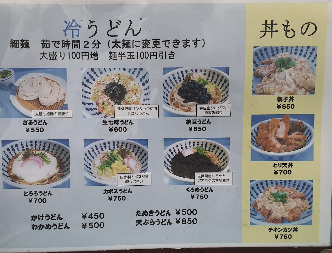 Jinde 메뉴우동집이고 우동에 대한 종류가 생각보다 많다.