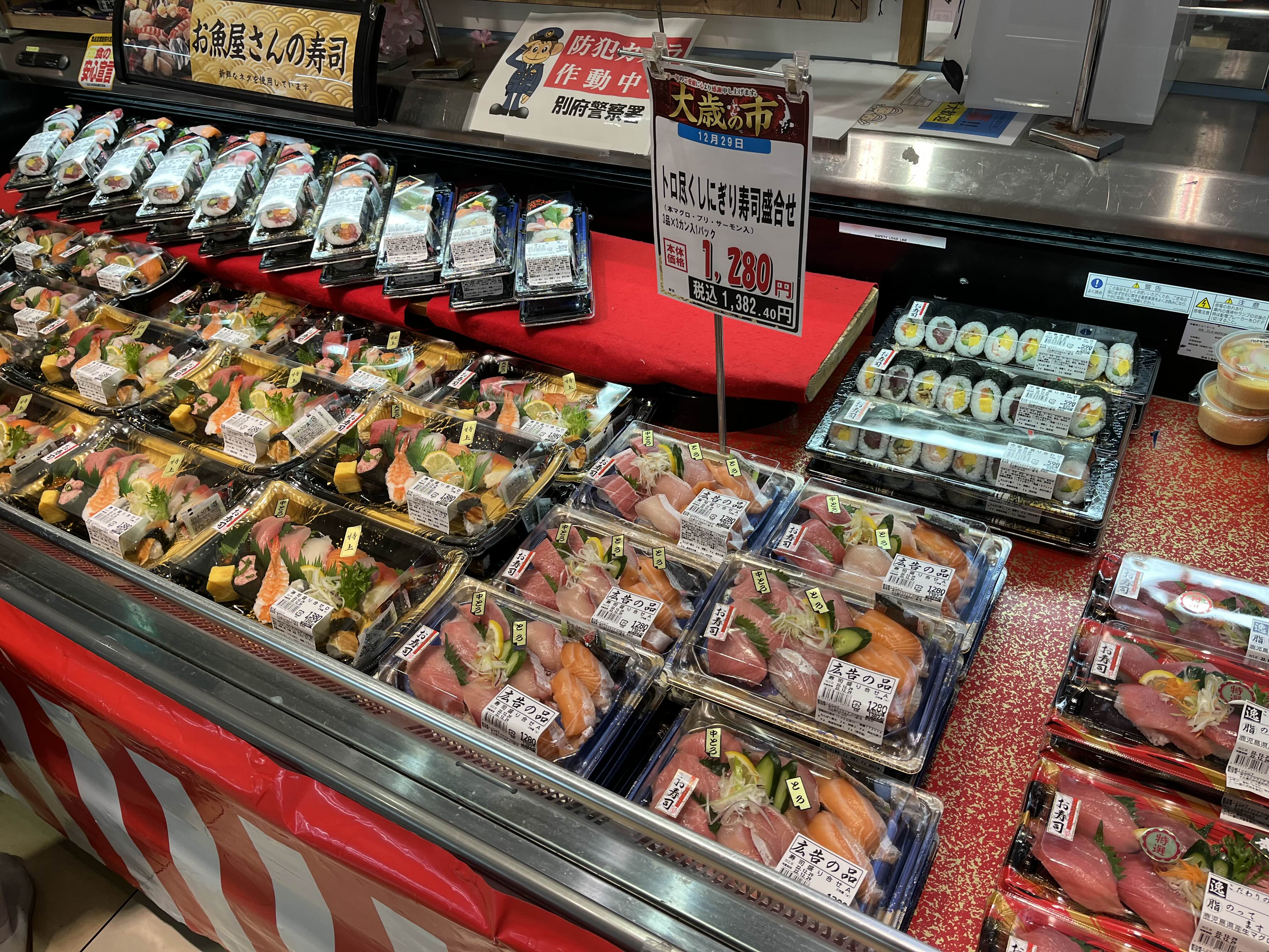일본 벳부 대형마트 스시 클라스. 스시가.. 보통 이상이다. 심지어 가격도 좋다 이게 5천원 정도.. 1점당 천원이 안된다. 심지어 맛도 좋다.