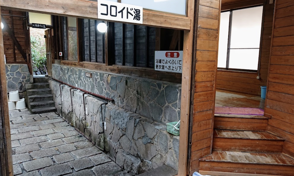 사진 우측이 탈의실 계단 대형탕을 기준으로 입구에서 보이는 노천탕과 사우나로 이어지고, 입구에서 바로 좌측으로 돌면 머드탕으로 내려가는 좁은 계단이 보인다. (계단이 진흙과 물로 인해 상당히 매끄럽다 조심하자)