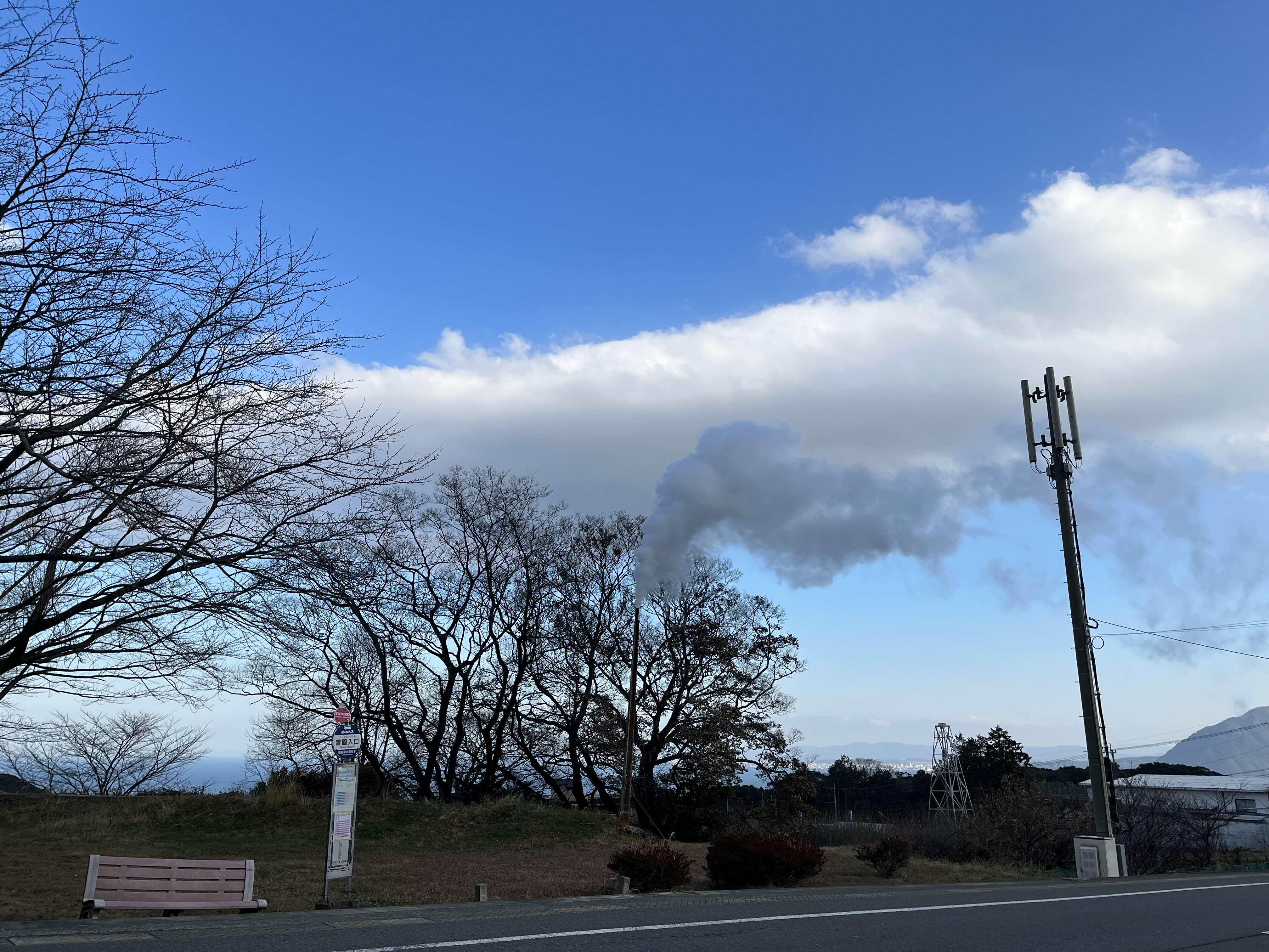 날씨가 좋은 12월 곳곳에서 증기가 펄펄 나고, 수증기속 유황 냄새가 난다.
