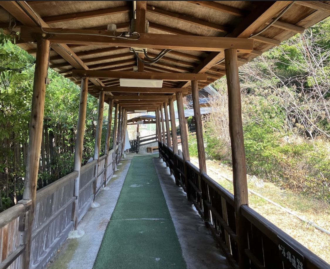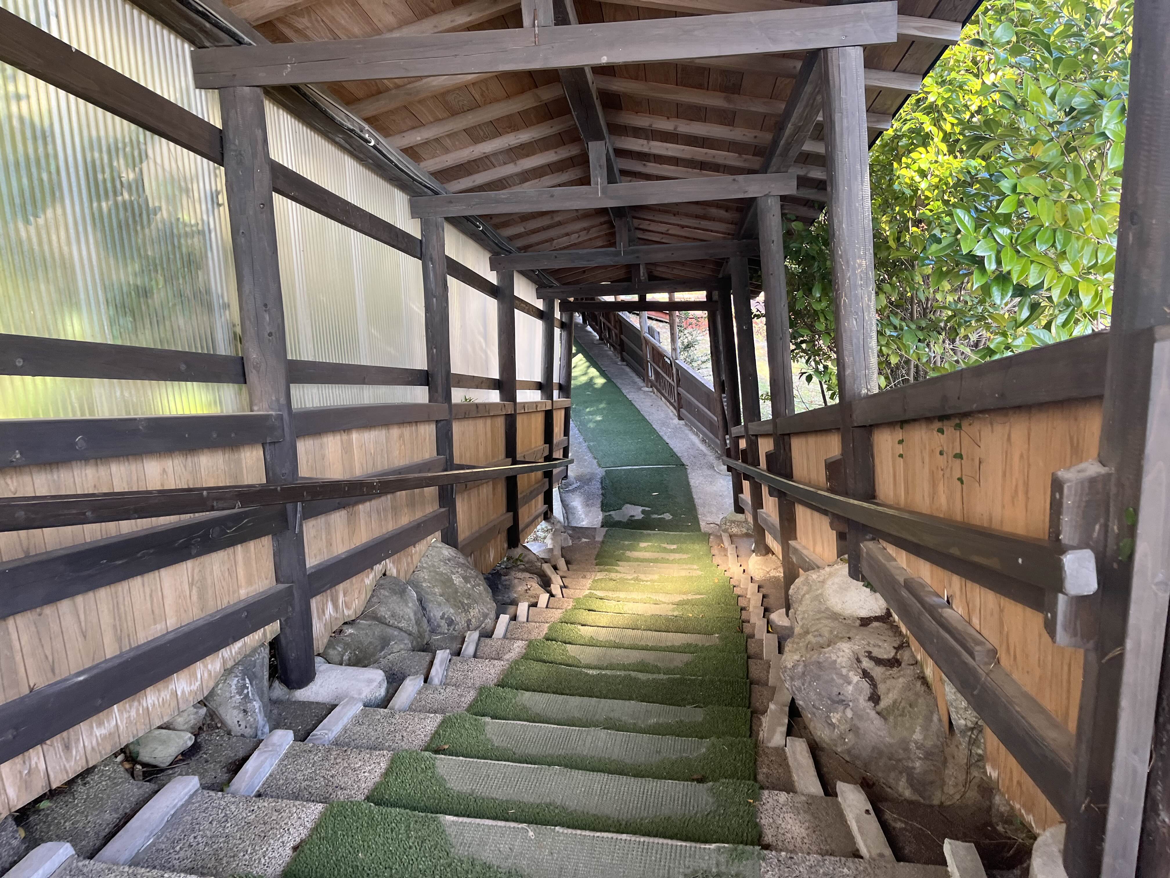 벳부 호요랜드 탕으로 가는길계단은 숙소로 향하고 뒤쪽 길로 쭉 걸어가면 야외로 나가는 길이 나온다. 슬리퍼가 있던것 같기도 하고.. 헷갈린다. 야외에 설치된 오솔길을 따라 가면 된다. 계단이 있으니 주의하자.