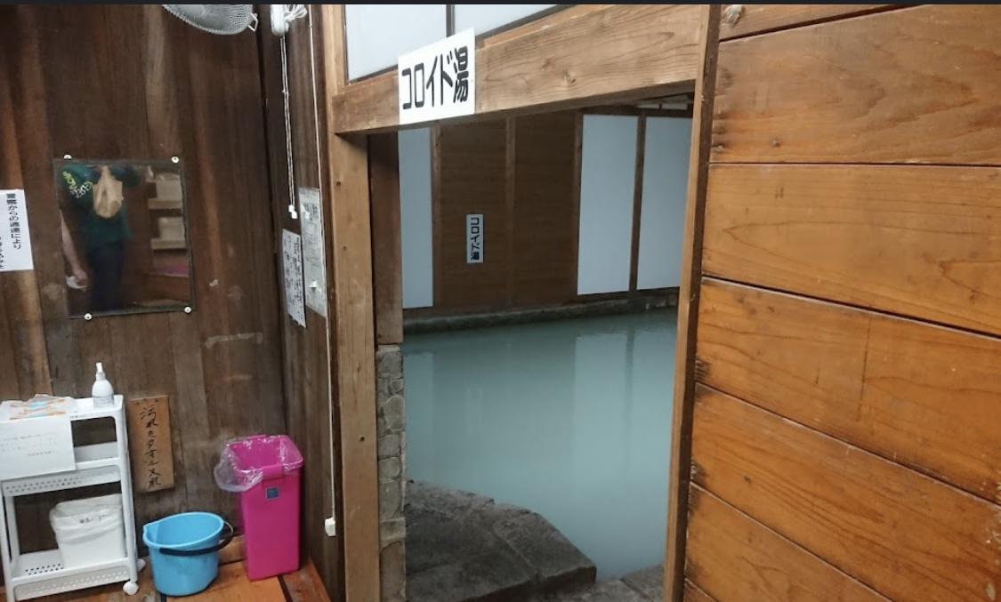 남탕기준 노랑색 동그라미 부분이 머드가 쌓여있다. 벳부 호요랜드 야외머드 온천
