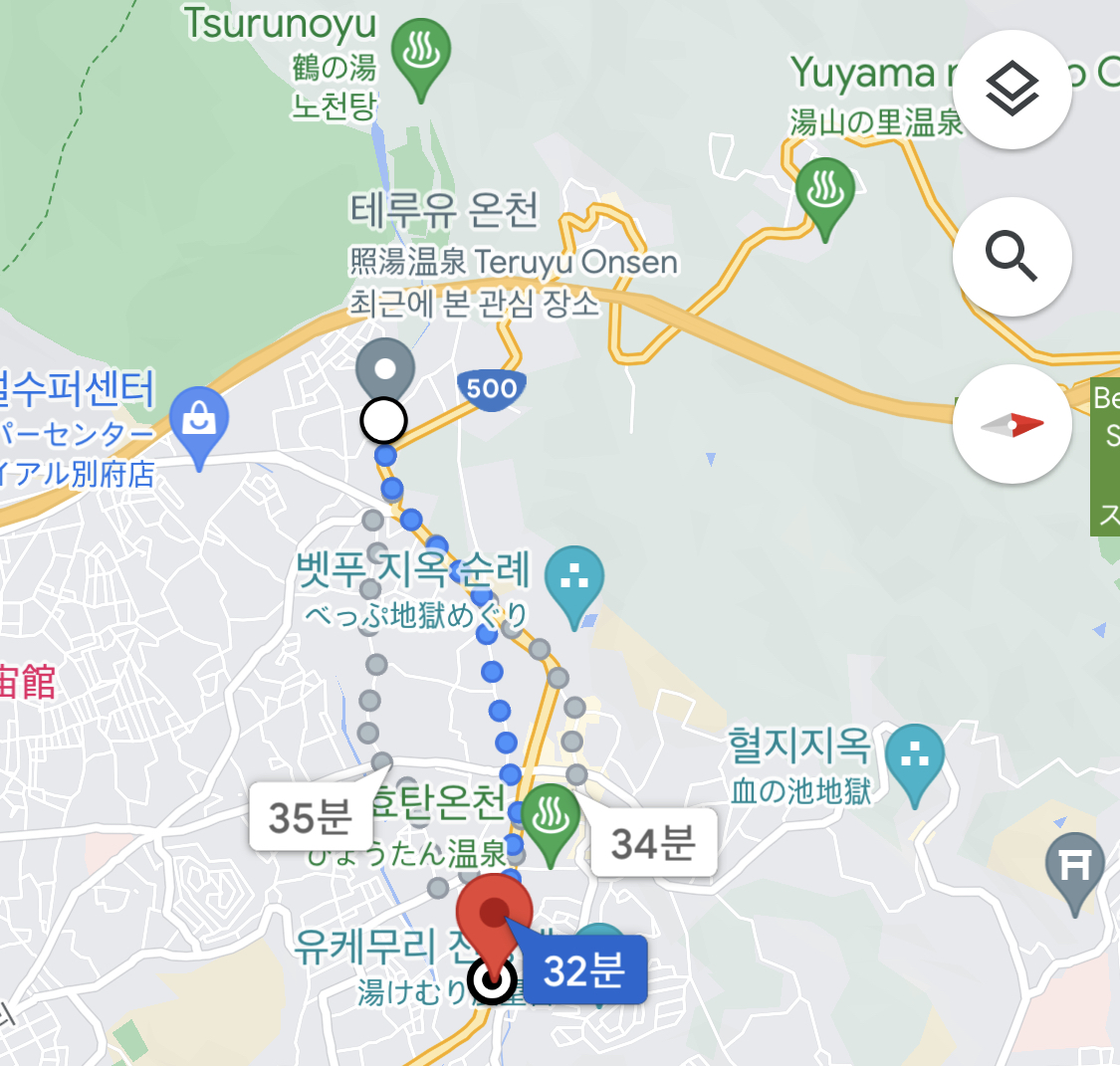앞서 오늘의 마지막? 온천을 하고 최종목적지인 쿠루쿠루 스시로 가야한다.! 약 30-40분 정도 산책 하듯이 벳부 동네구경하면서 가다보면 도착하겠지?!