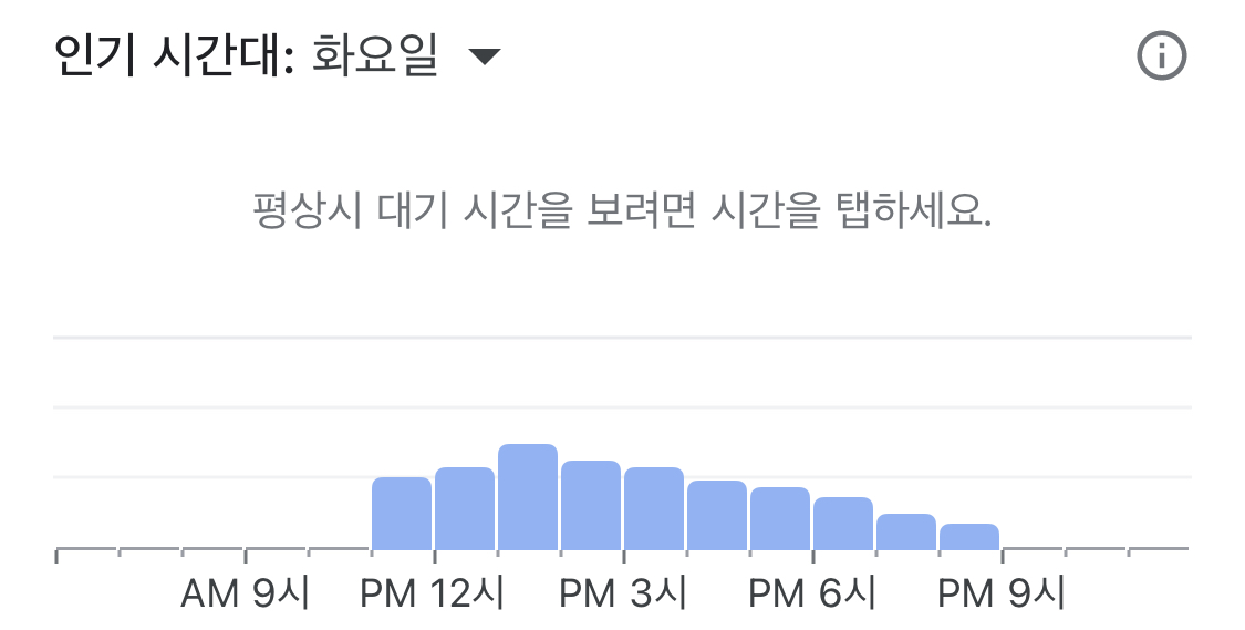 수요일이 정기 휴일이고, 통계적으로 보면 화요일이 가장 조용한 날인듯 한데.. 그외 날들은 통계적으로 비슷해 보였다. 공휴일 주말은...