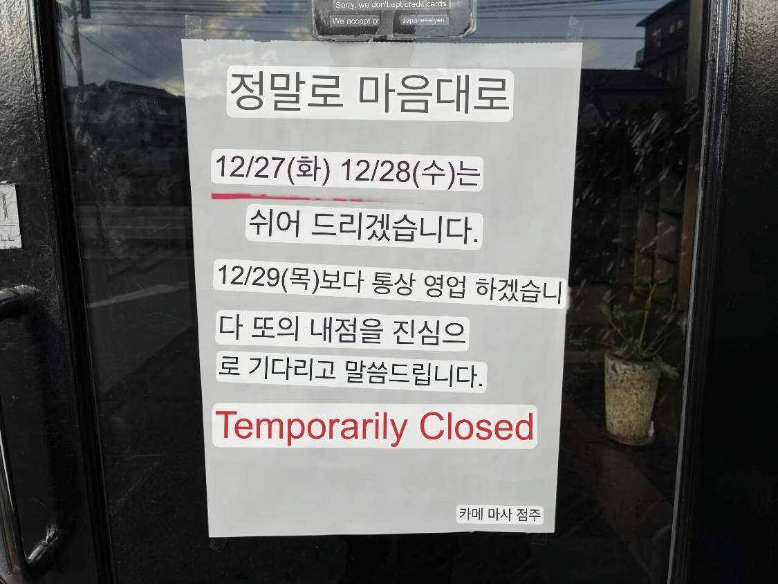 오이타 향수박물관을 구경하고 도보 7분거리(느낌은 5분 ㅋ)에 위치한 쿠루쿠루스시로!! 가려고 했는데.. ㅆㅂ.. 임시 휴업.. 크루쿠루스시집에 도착했는데… 휑… 7분동안 걸어 왔는데.. 아무도