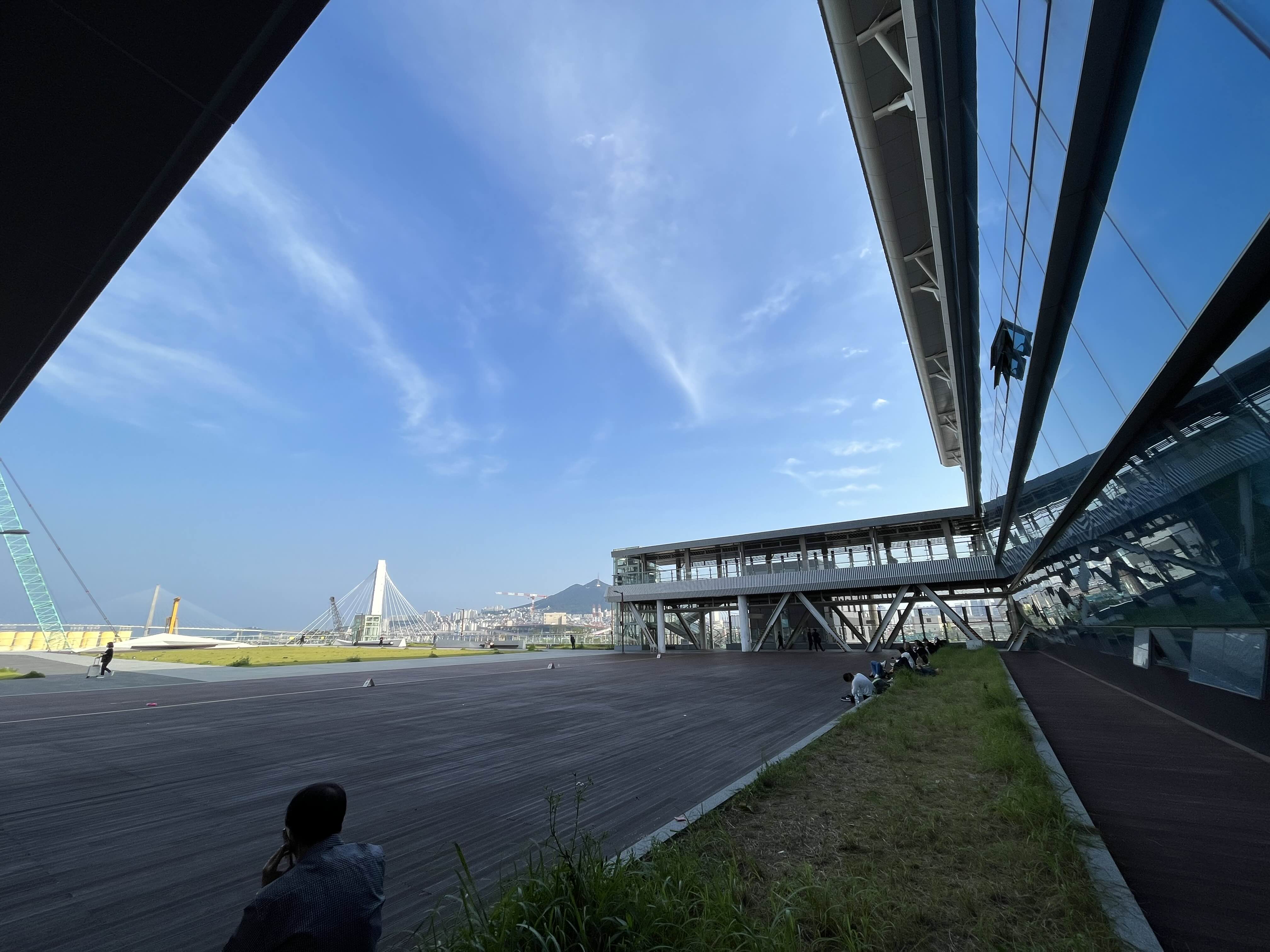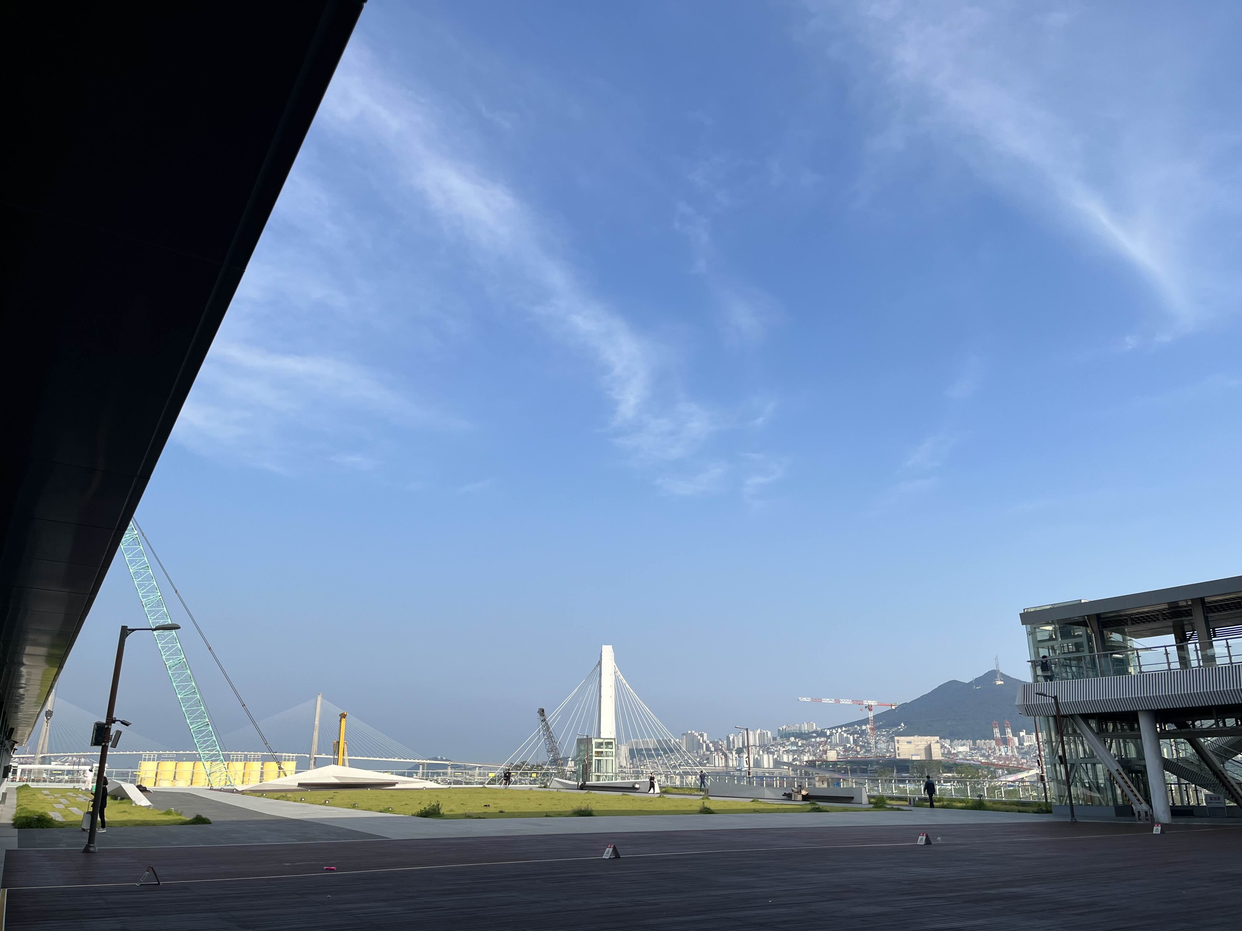 부산역 후문으로 가게되면 멀리 북항대교와 넓은 광장을 마주하게 된다. 푸른날은 사람의 마음을 푸근하게 해주는 장소가 될듯하고, 야간에도 벤치에 앉아 도시야경을 구경하는 사람들이 많았다.