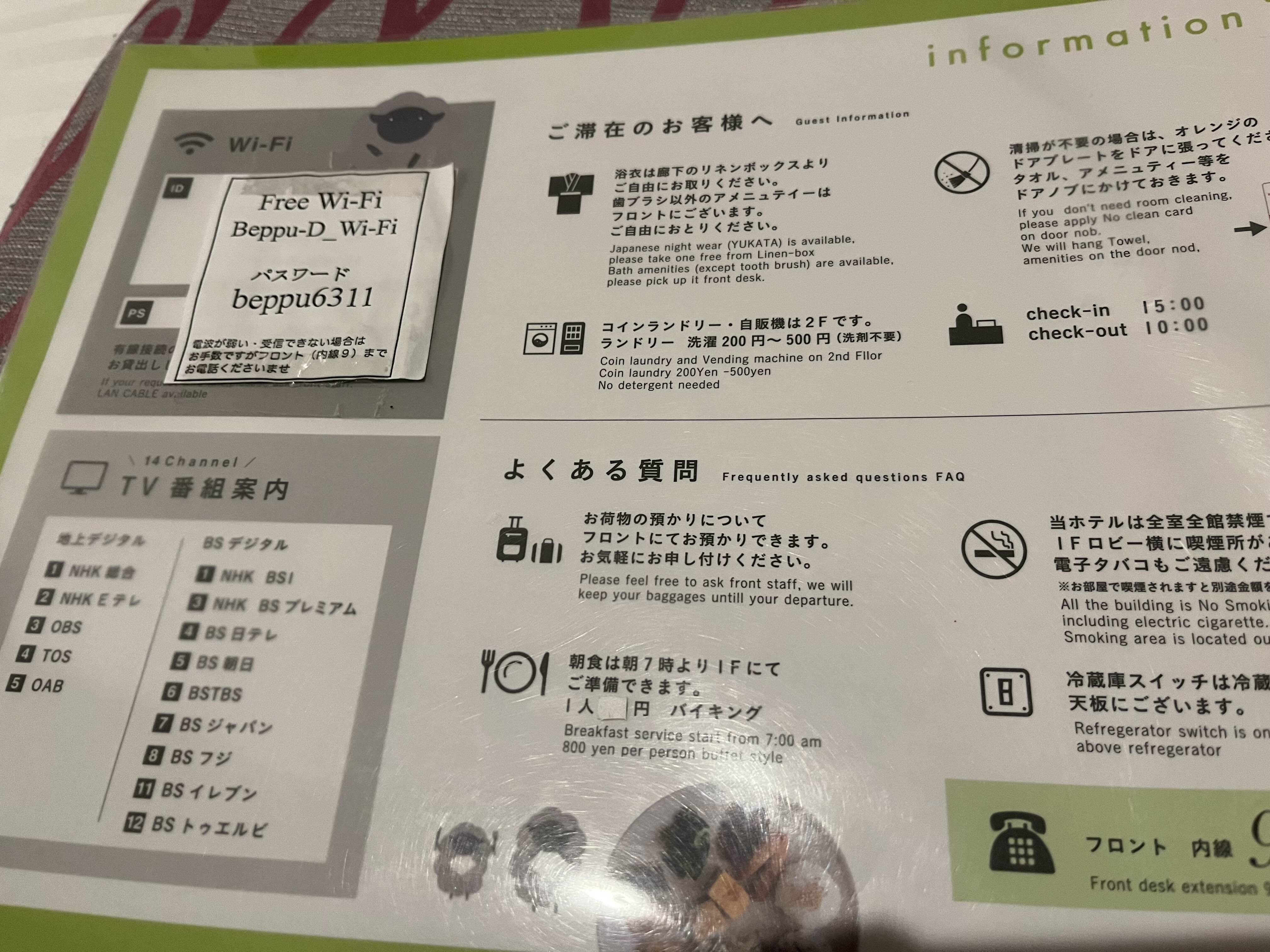 벳부 다이티 호텔 와이파이와 비밀번호