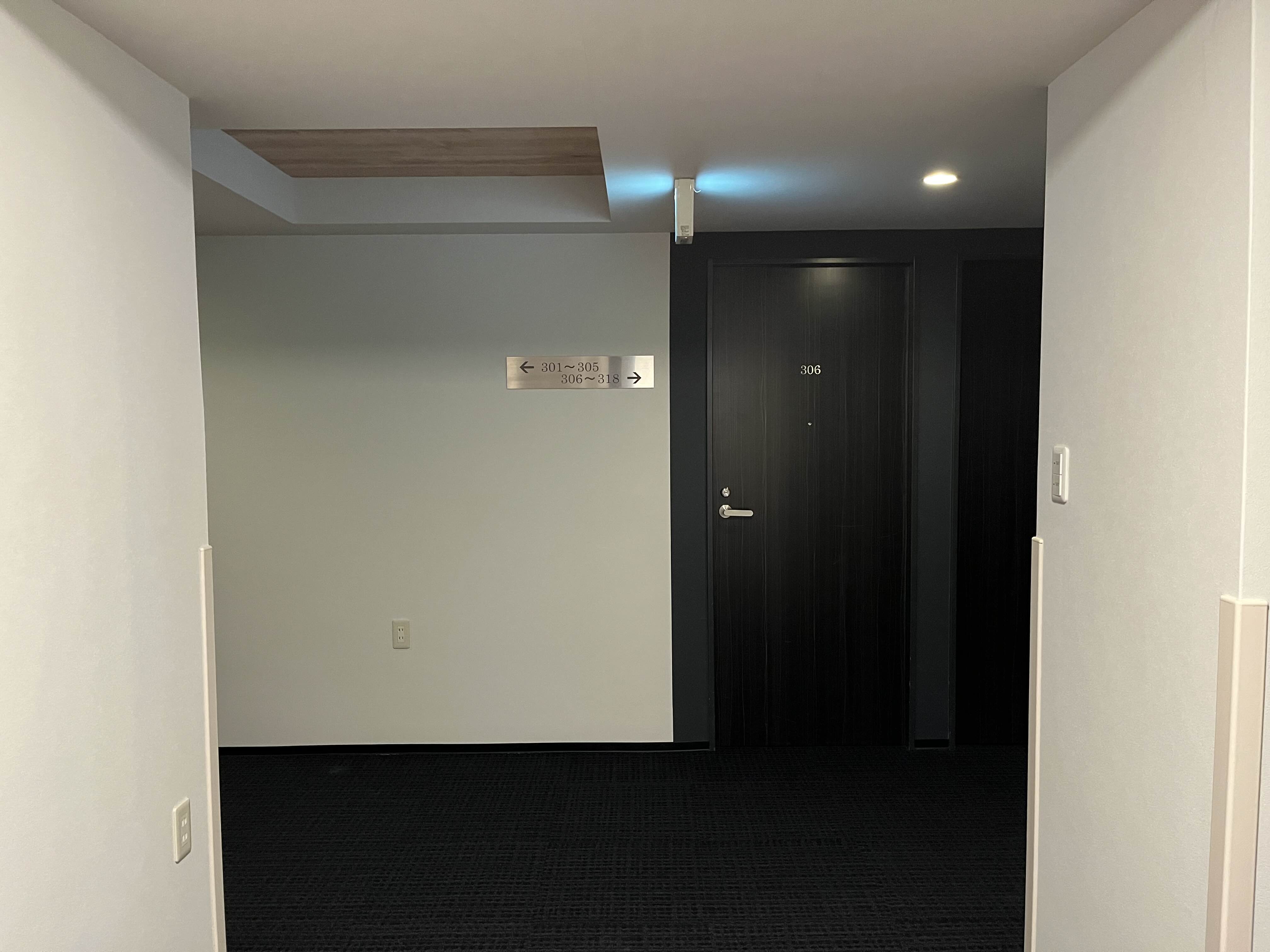복도가 어두운 느낌으로 잘 되어있다.