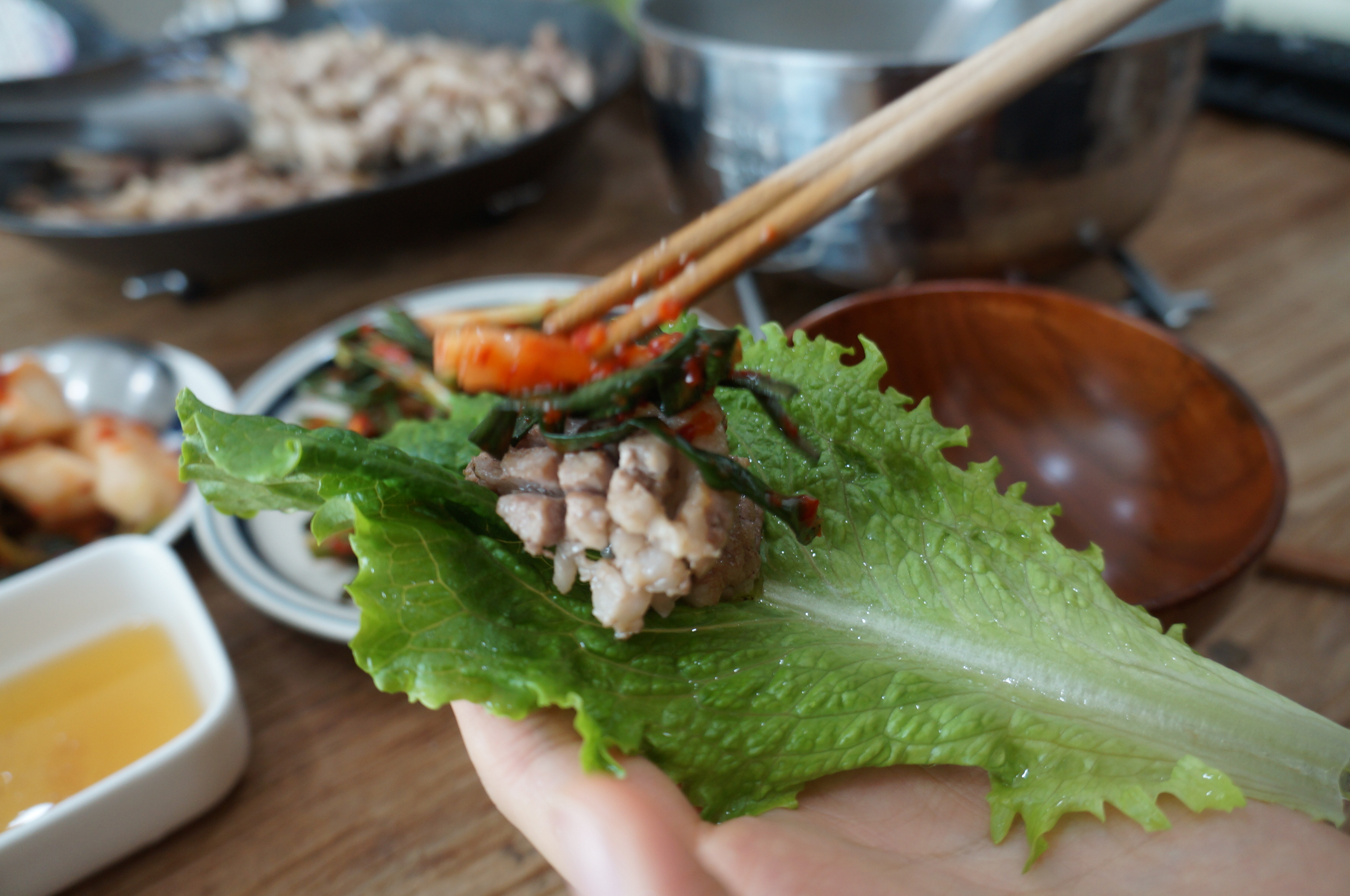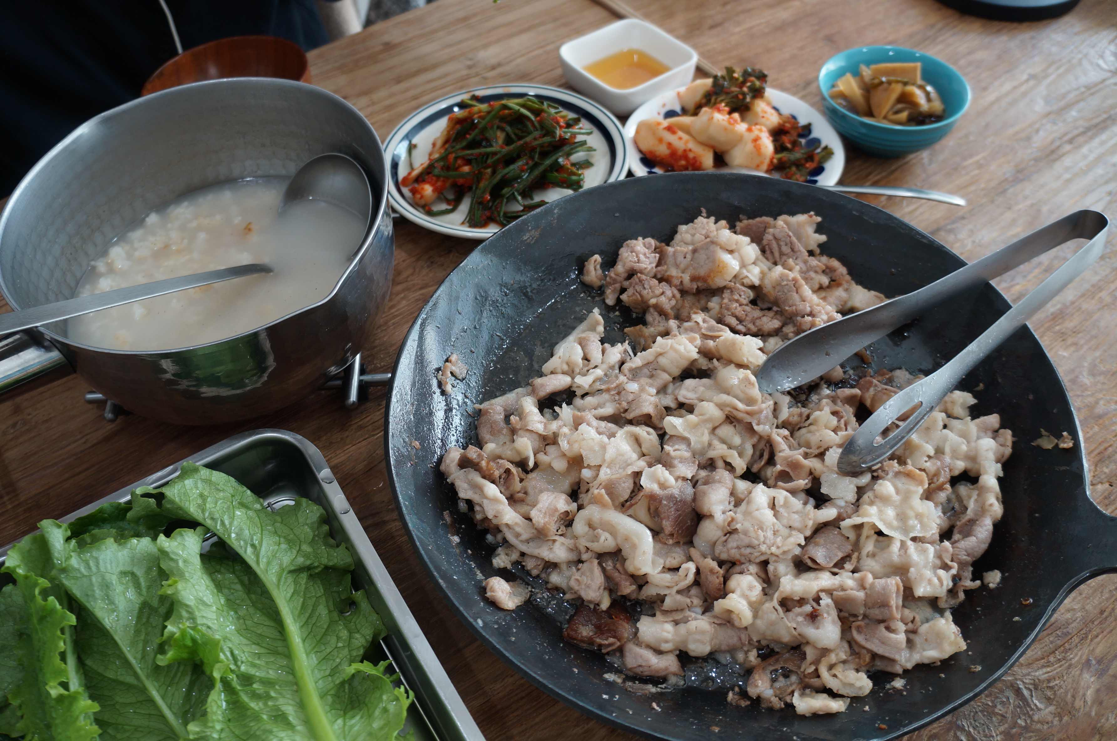 대패와 벌집삼겹을 다 구어주고, 쌈을싸먹을수 있게되었다.! 특히 파김와 삼겹의 조화는 아주좋았다.!