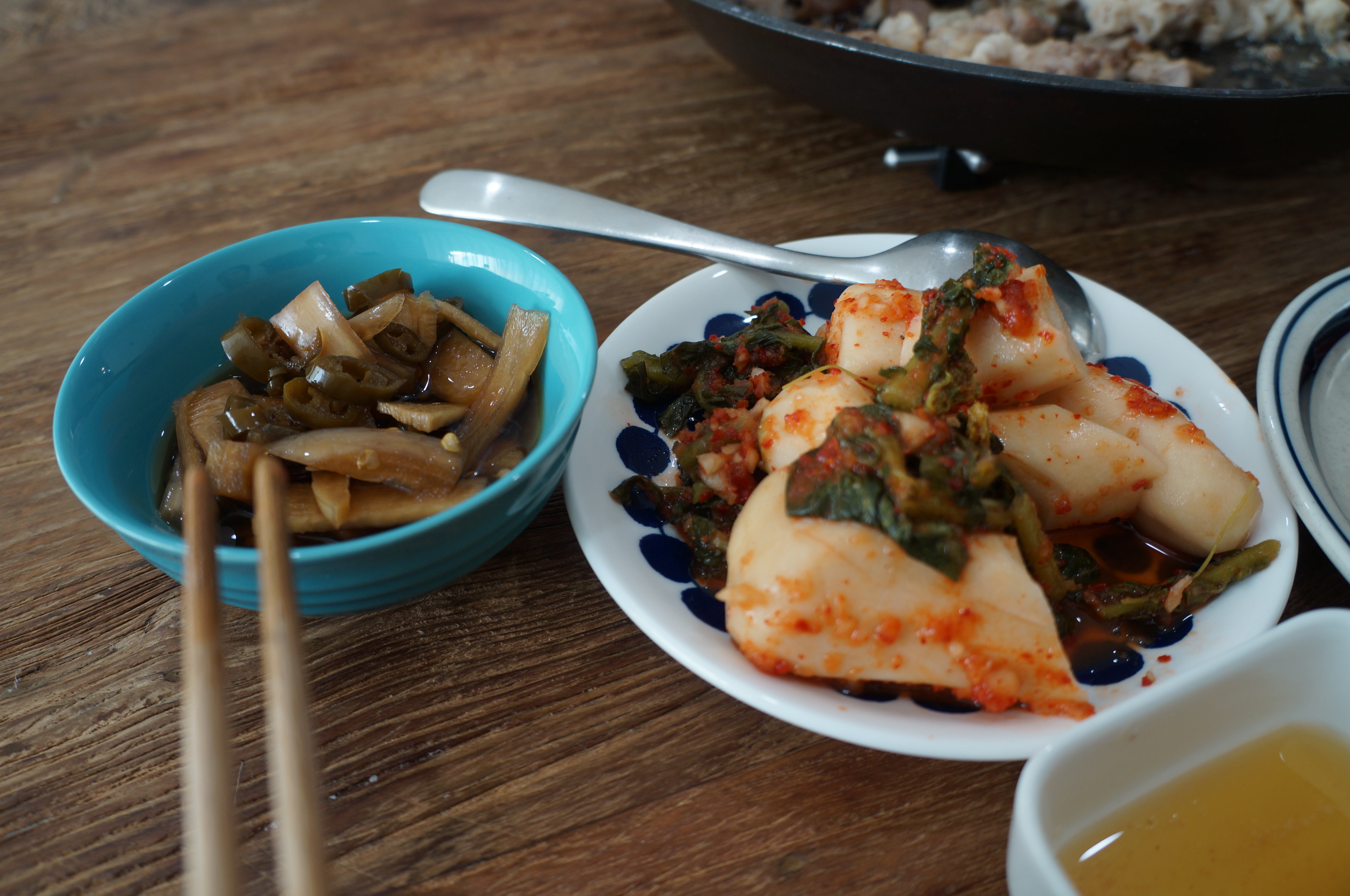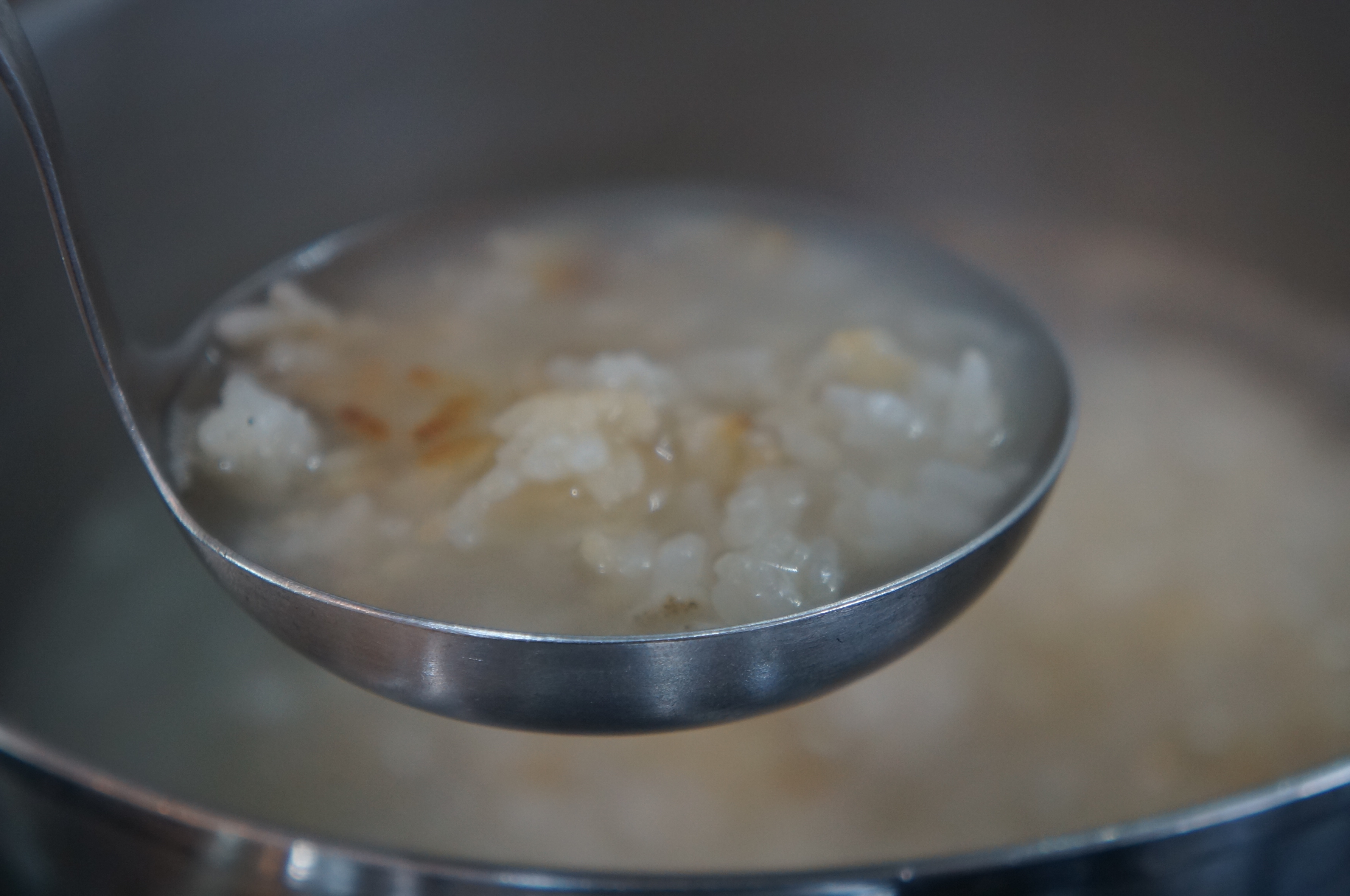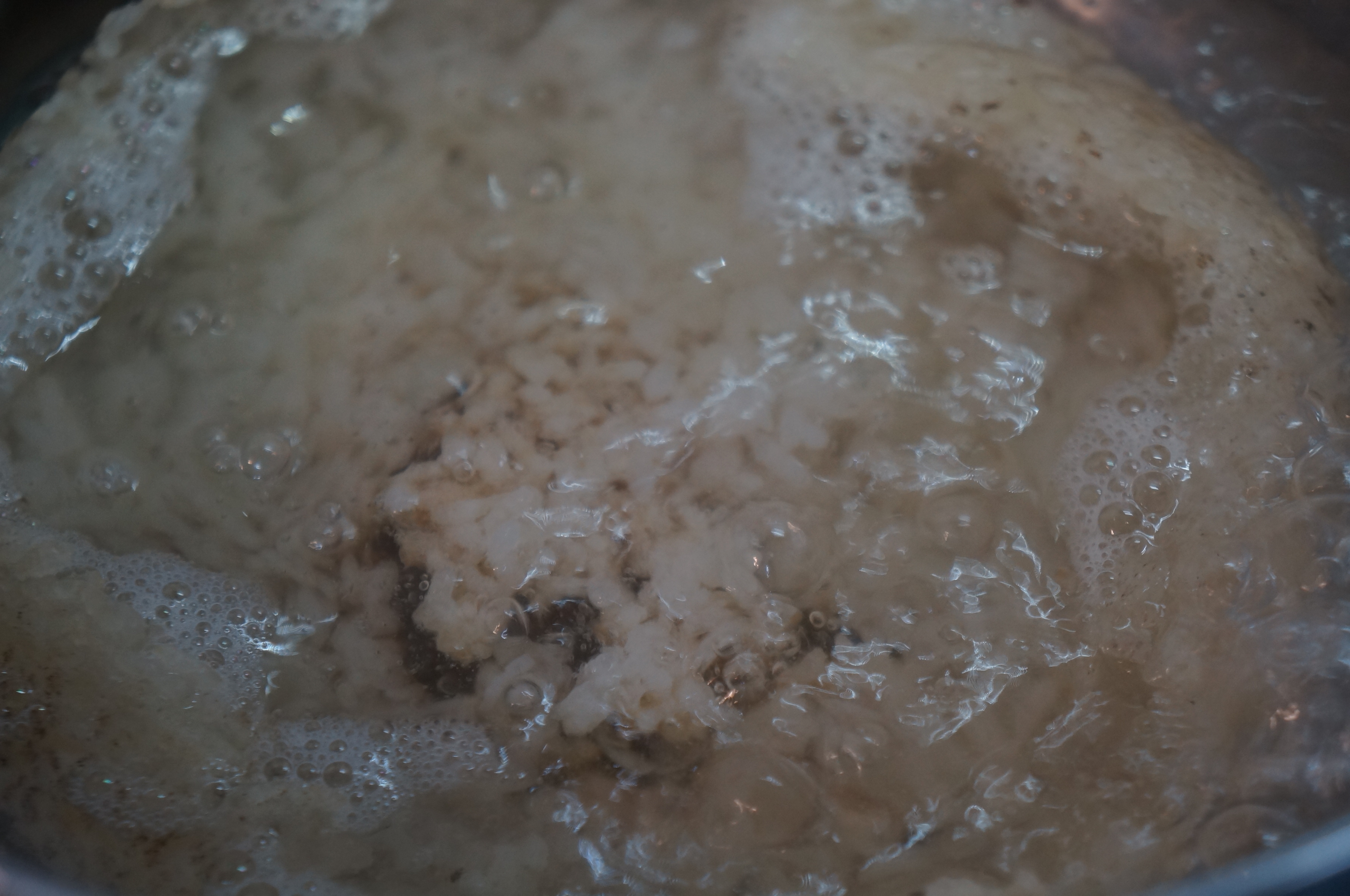 지난번 무쇠솥에 먹고 만들어진 누룽지를 냉장고에 넣어두었다. 이번에 밥을 하지않고, 누룽지를 유키하라팬에 넣고 끓여주면 끝.