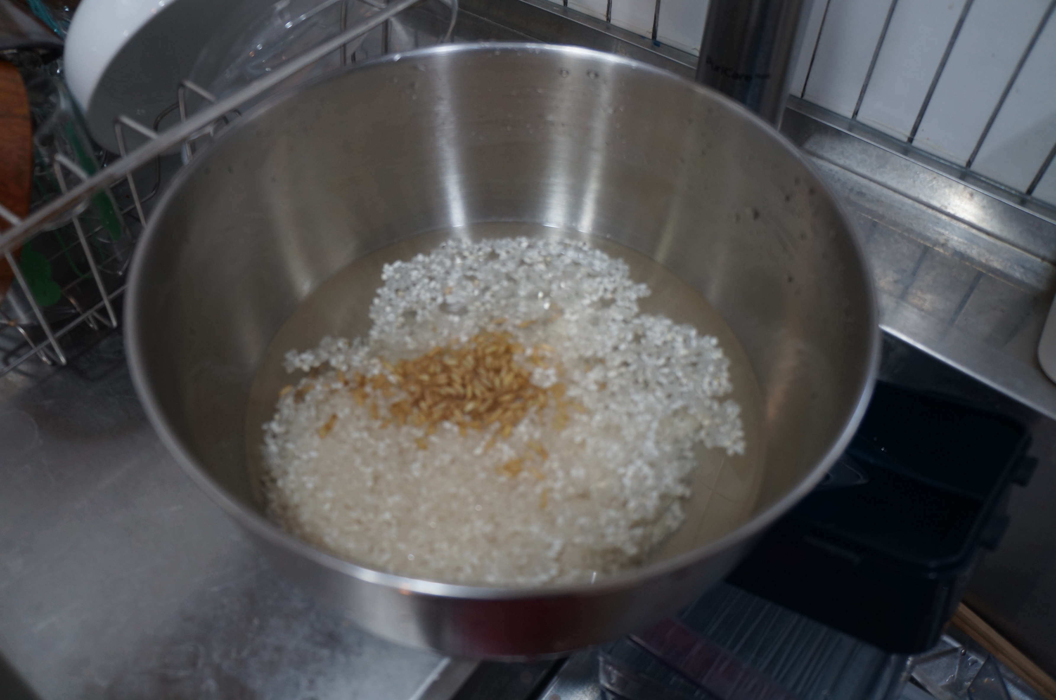 쌀을 씻어주고