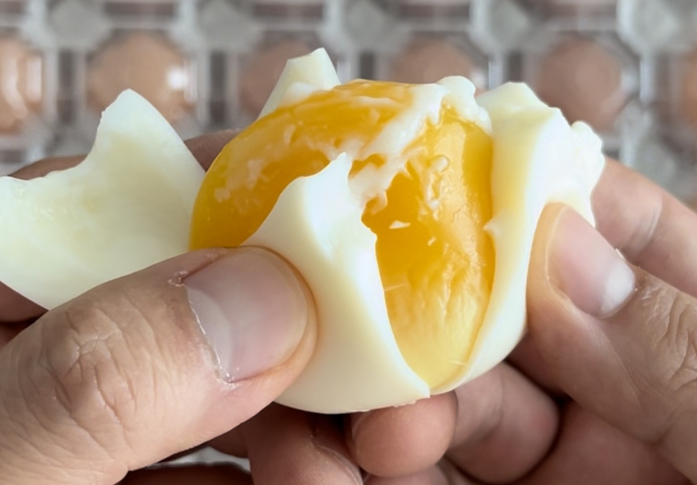 아주 잘까지며 흰자의 떨어짐이 거의 없다. 수치적으로 표현하면 0.24%의 확률로 흰자가 붙어져 나온다.
