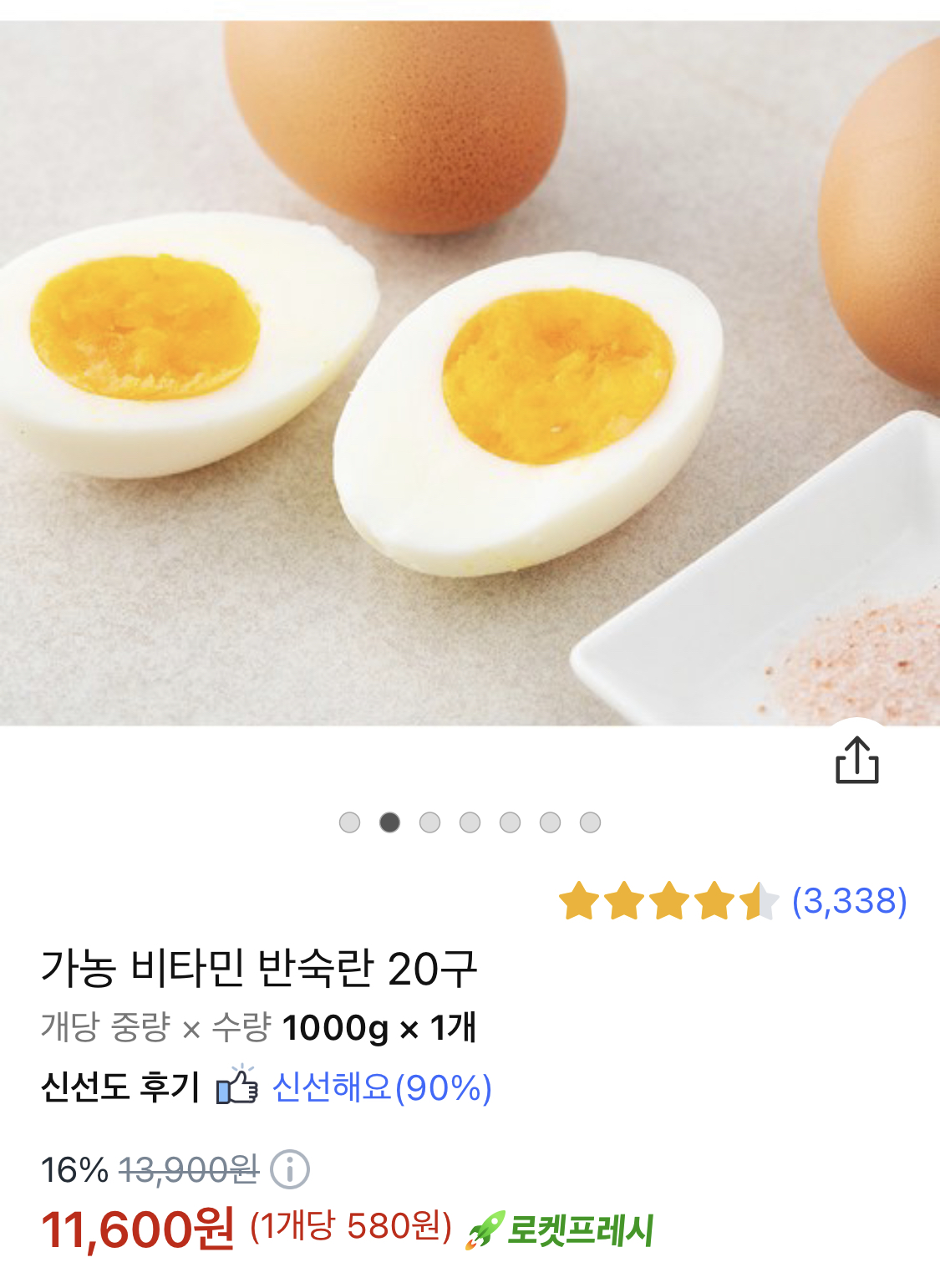 이상 쿠팡프레쉬 판매 2등 반숙란 리뷰 끝.!