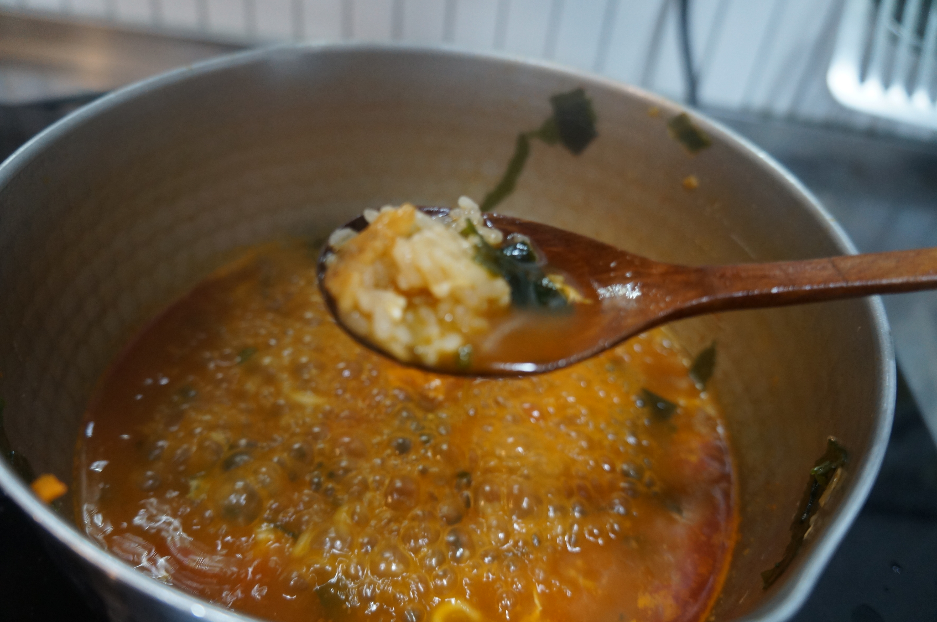 오동통누룽지탕그냥 면만먹으면 아쉽지 그래서 준비한 누룽지.! 누룽지는 지난번 밥을하고 남았던 솥에서 나온 누룽지를 냉장고에 넣어둔것! 그대로 넣고 끓이면. 끝