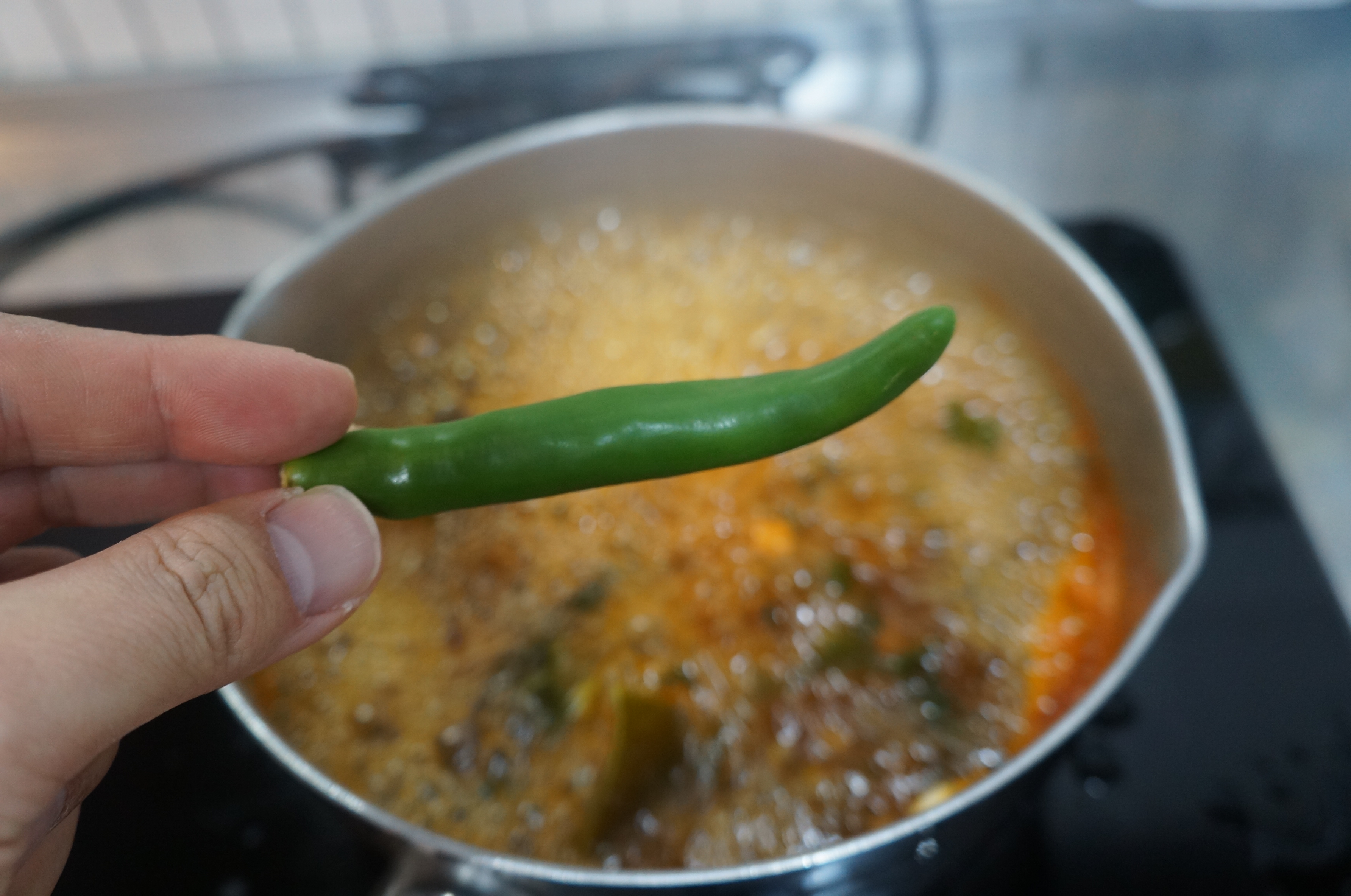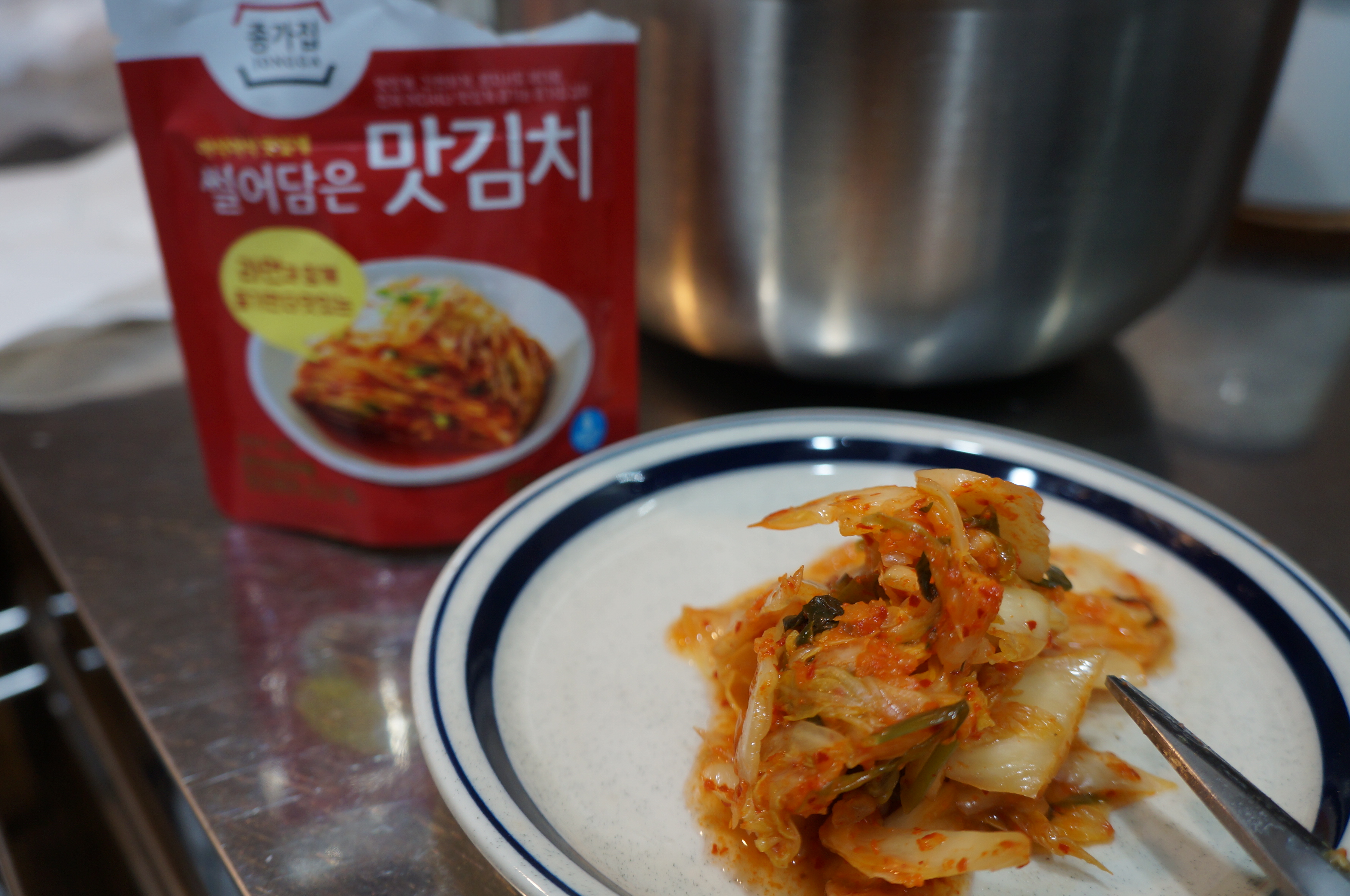 오동통면을 더 맛나게 먹기 위해선 국시장국과 고추를 넣어준다.! 물론 매운고추~ 그럼 국물이 도 얼큰하게 맛난다! 그리고 완전 완전 익은 김치를 준비!