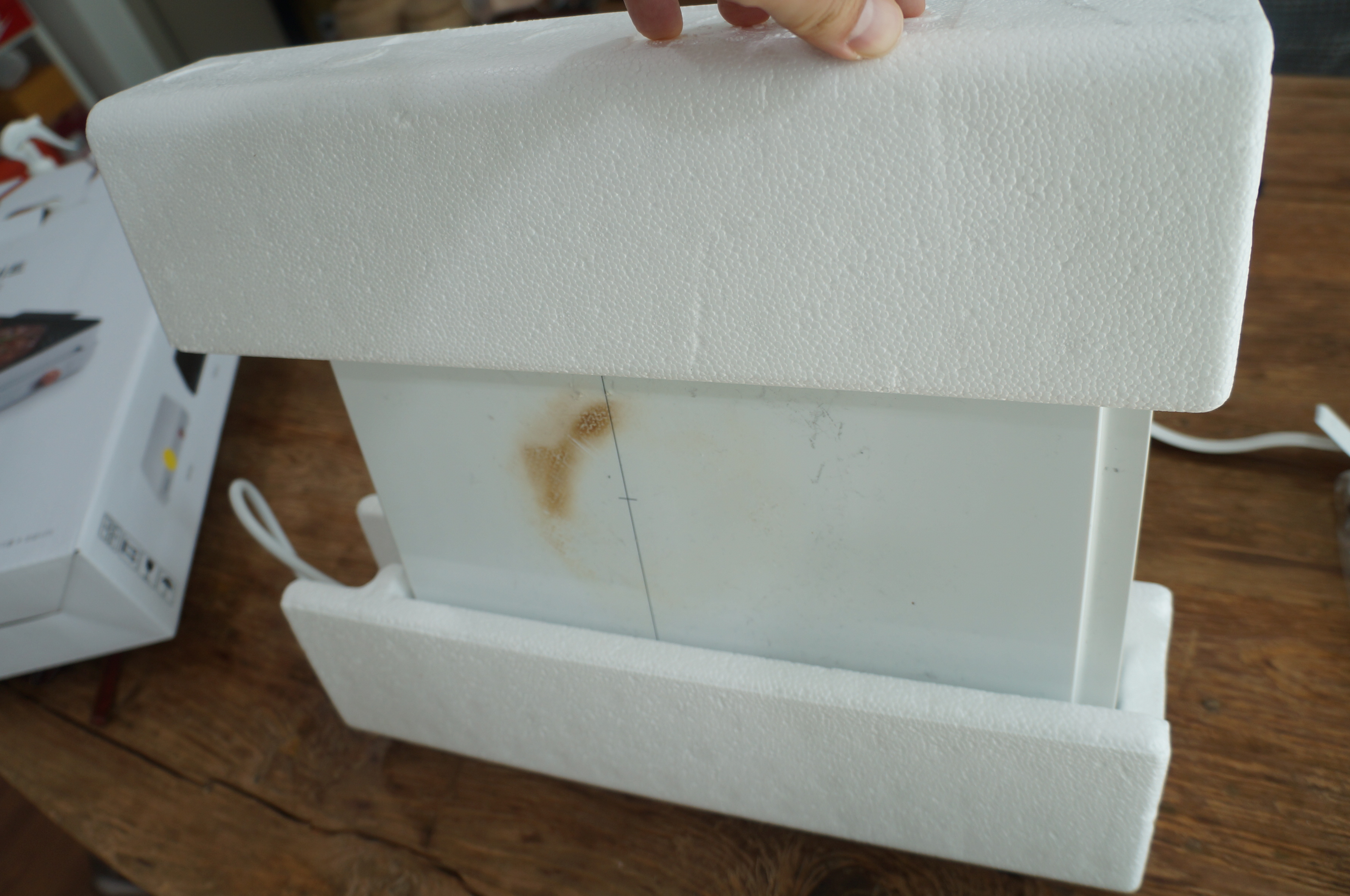 용기는 별도 구매 내부는 스티로폼으로 안전하게 구성이 되어있다.
