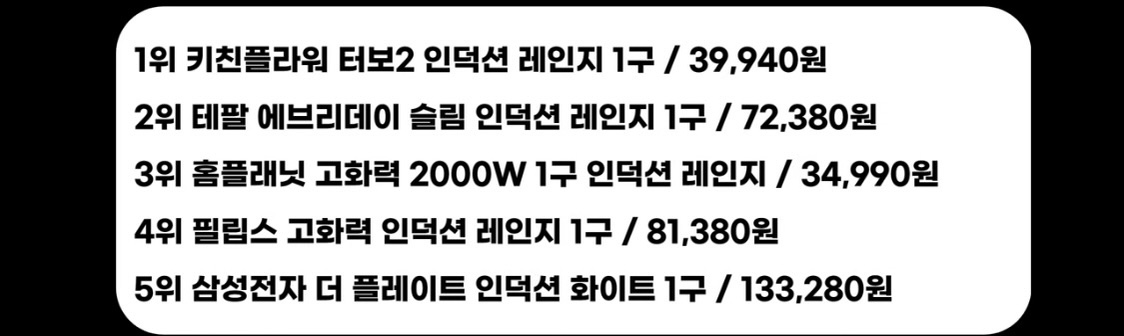 인덕션 1구인기 영상을 봤는데 .. 지금 제품은 그나마 5위.. ㅎㅎ