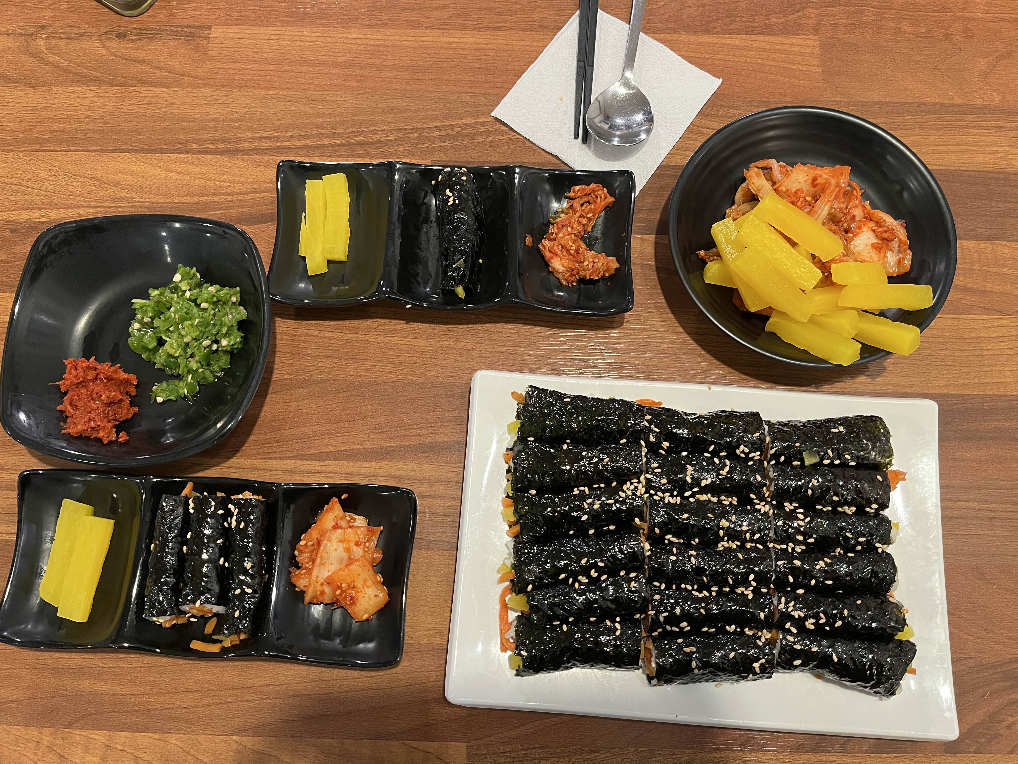 광어골 왕칼국수 주문메뉴우리는 기본으로 제공되는 김밥에 항상 의문이 들었다. 왜냐하면, 기본으로 주는 김밥과 시킨 김밥은 맛이 달랐다. 기분탓인가?.. 해도 기본으로 주는 김밥보다 주문하는 김밥이 훨씬 맛낫다. 특히 당근이 더 고소하고, 기름도 잘 발라져 나왔다 ㅎㅎ