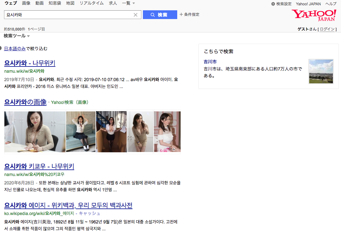 결론을 먼저 말하면 야후재팬에선 "유키하라" 의 검색결과는 냄비로 검색이 되지 않는다!!!요시카와그룹