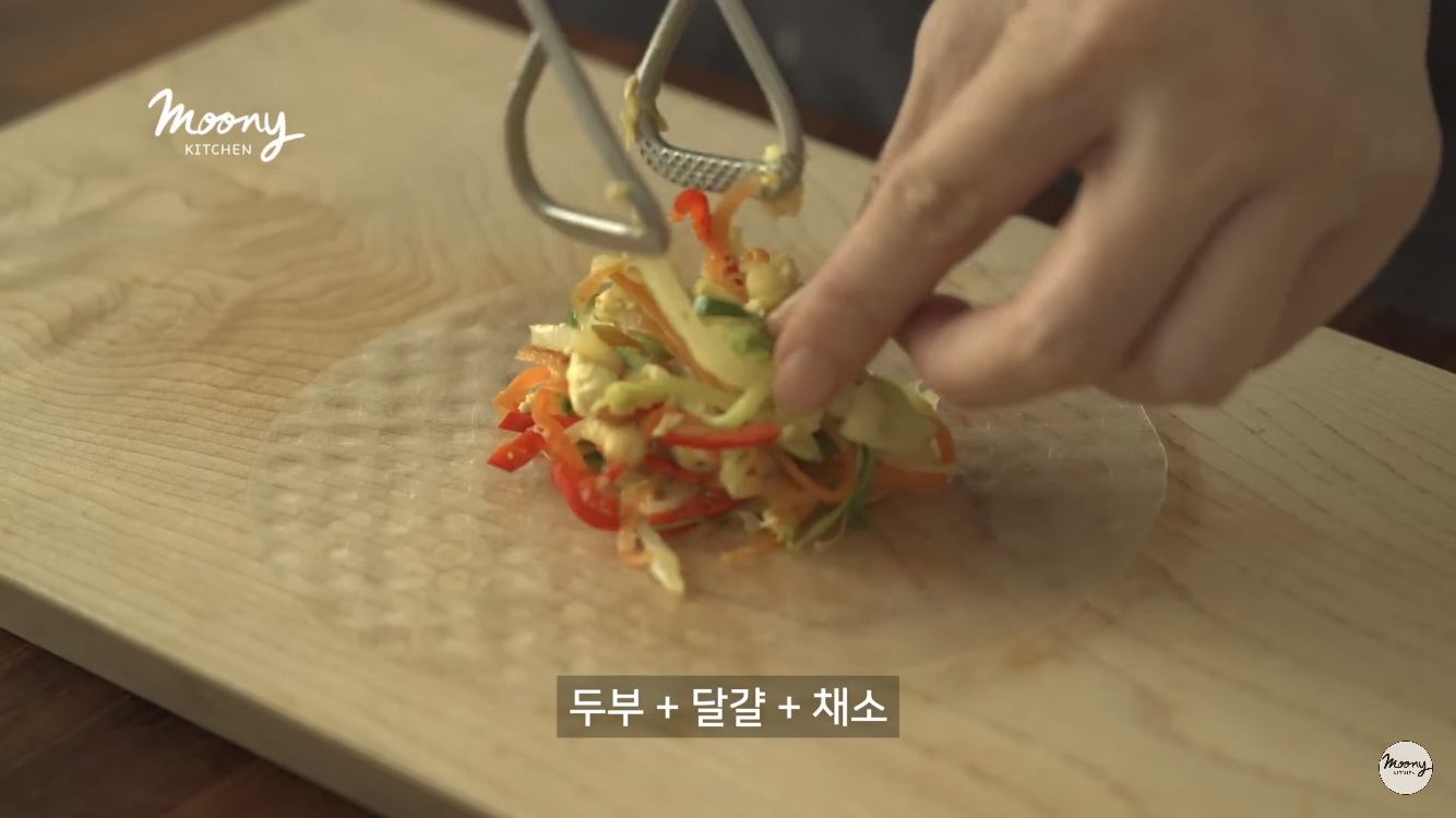 두부와 야채 그리고 라이스페이퍼를 이용한건강식을 알게되었다. 두부를 익혀주고, 썰어진 야채를 넣고 적당하게 계란 스크램블과 섞은 후 라이스페이퍼에 싸서 맛난소스에 찍어먹는!!