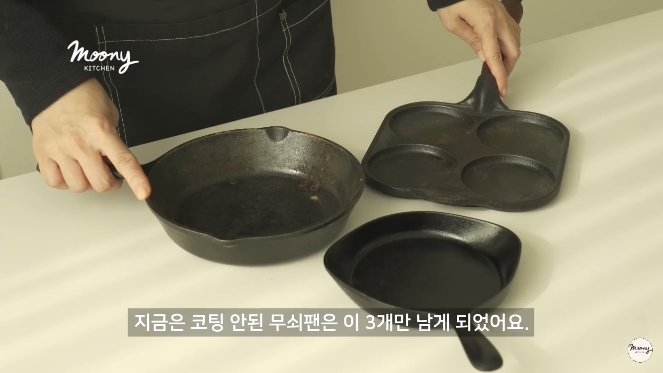 그리고 무쇠팬과 스테인레스팬도 사용하셨는데 결국 코팅팬으로 선택을 하셨다고 하신다.!