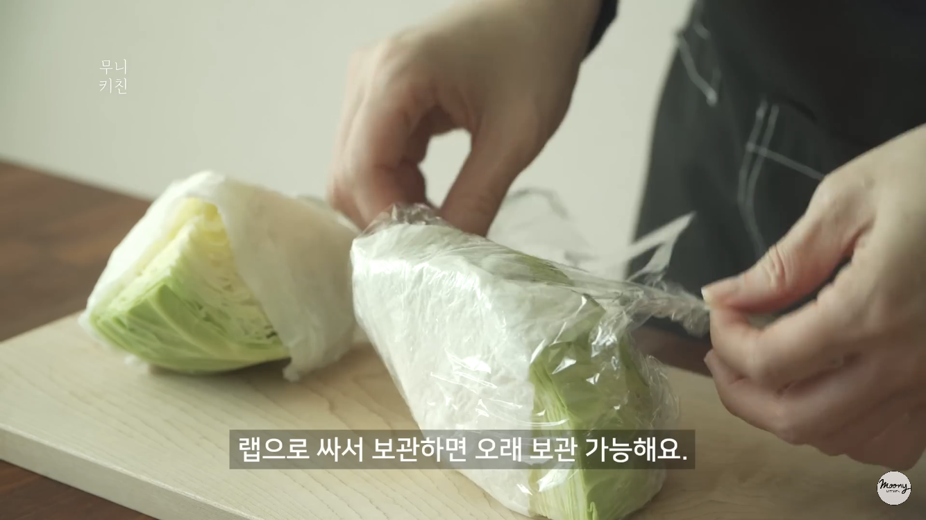 양배추를 오래 보관하는 방법양배추를 물에적신 키친타올로 감싸고 비닐랩을 감아놓아 냉장고에 두면 오래써먹을수 있다는 팁!!