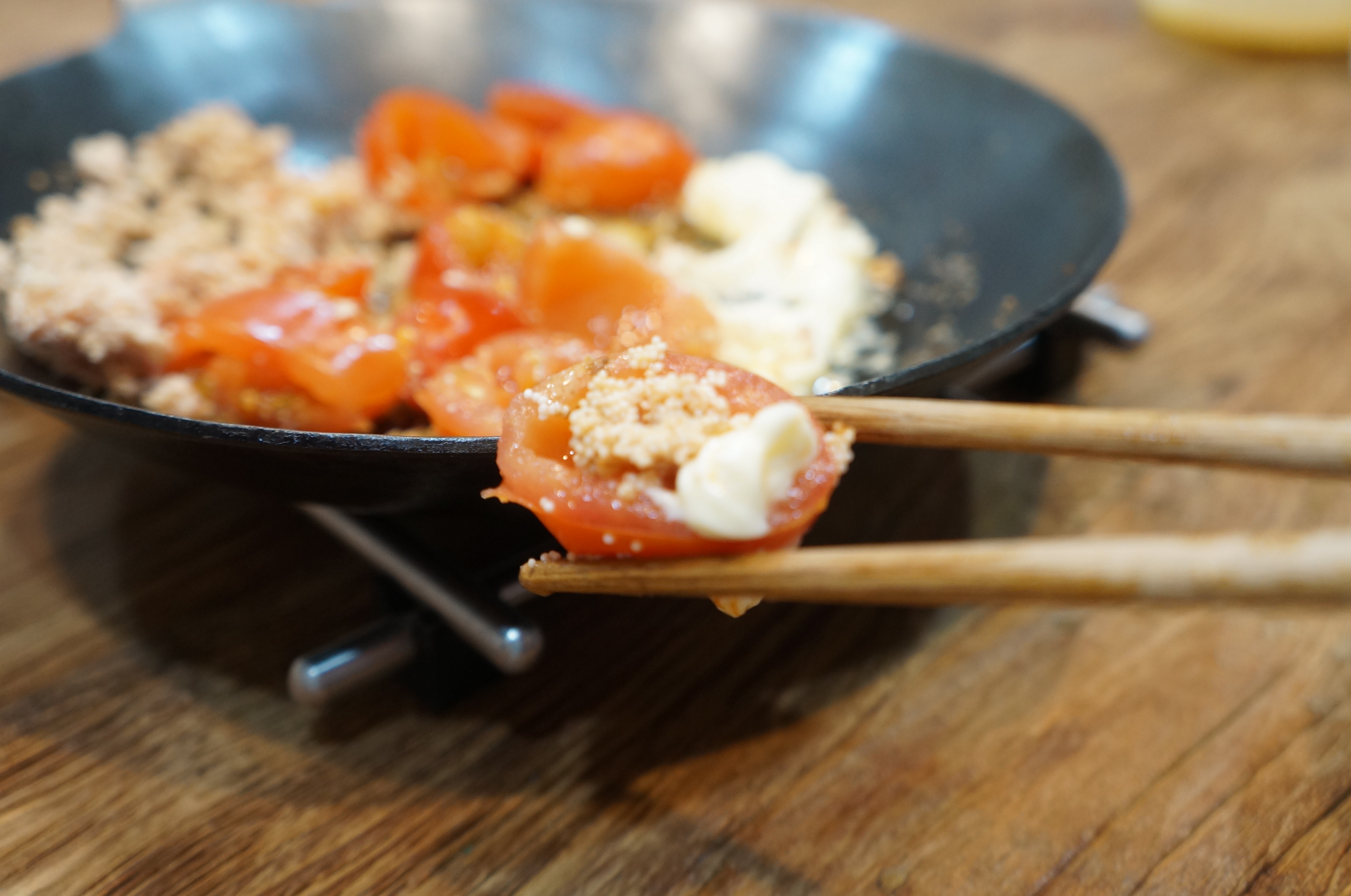 스테비아 명란마요 후기건강식 안주로 추천! 명란을 구워주고, 토마토는 익히는것보다 살짝 데워주는 느낌으로 그리고 마요네즈를 듬뿍 넣어주면.!