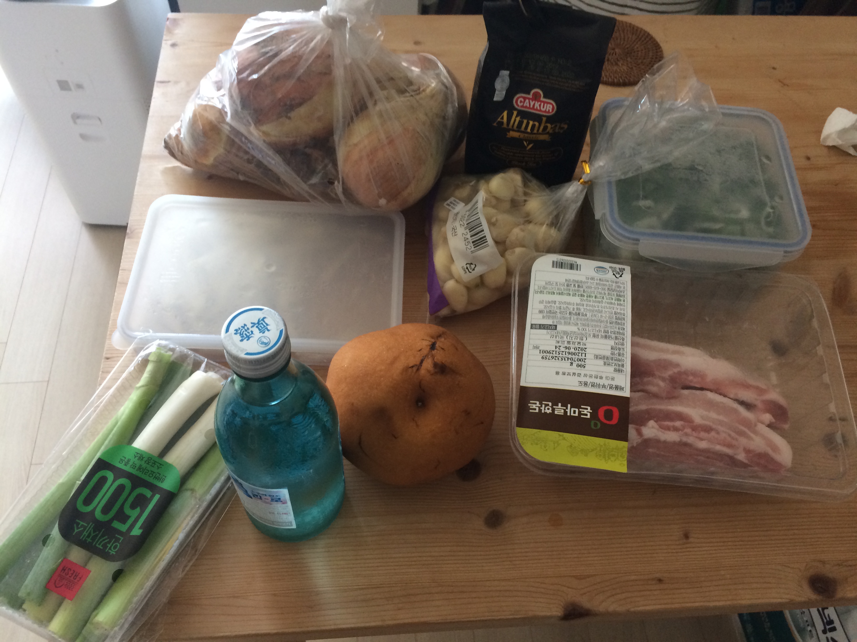 재료 : 쿠팡 삽겹살, 사과, 배, 파, 양파, 마늘, 소주(또는 맛술)