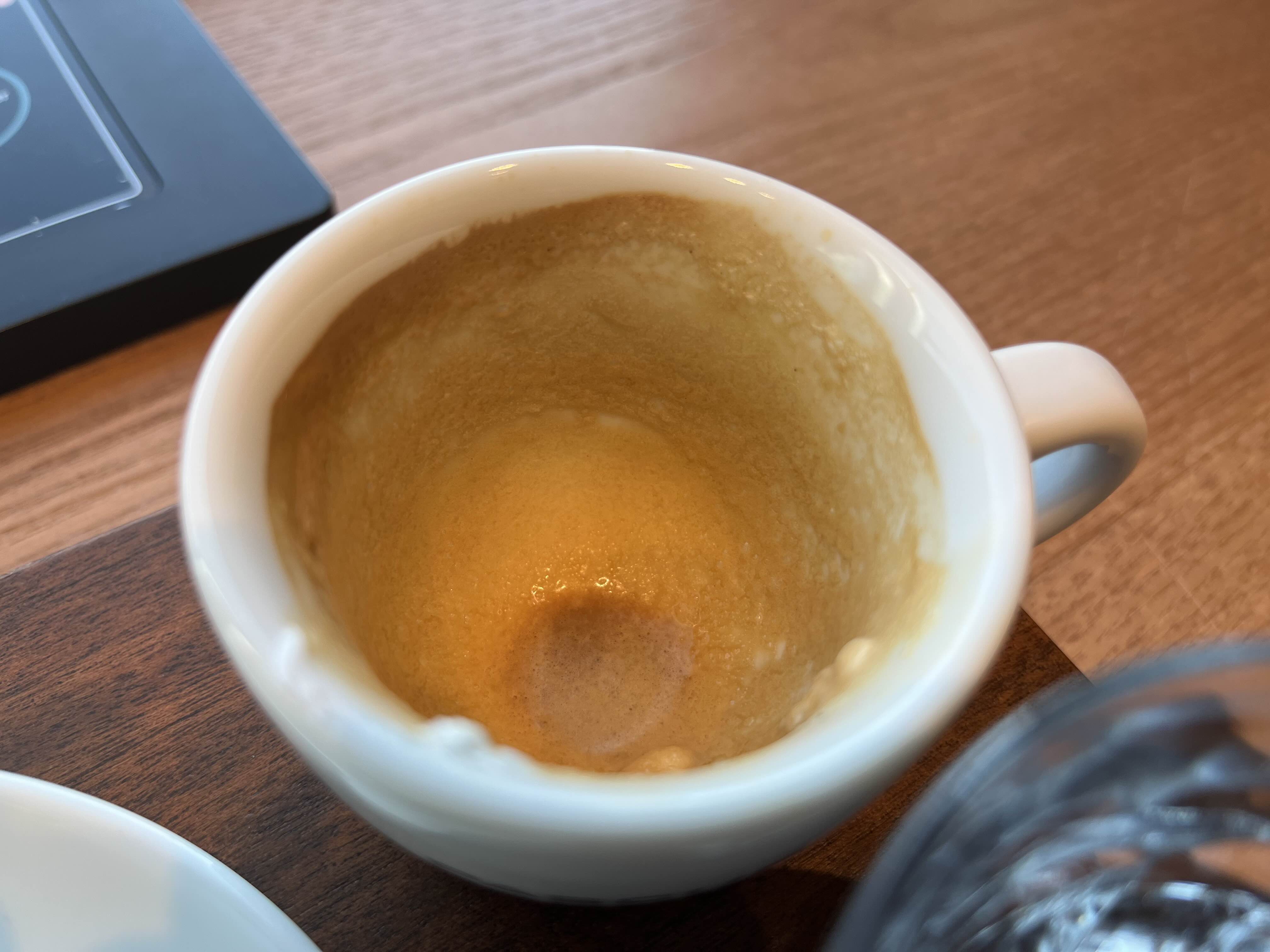 3. 마무리로 추가된(베리에이션-하얀잔) 에스프레소 원샷(바닥에 설탕이 깔려있다)