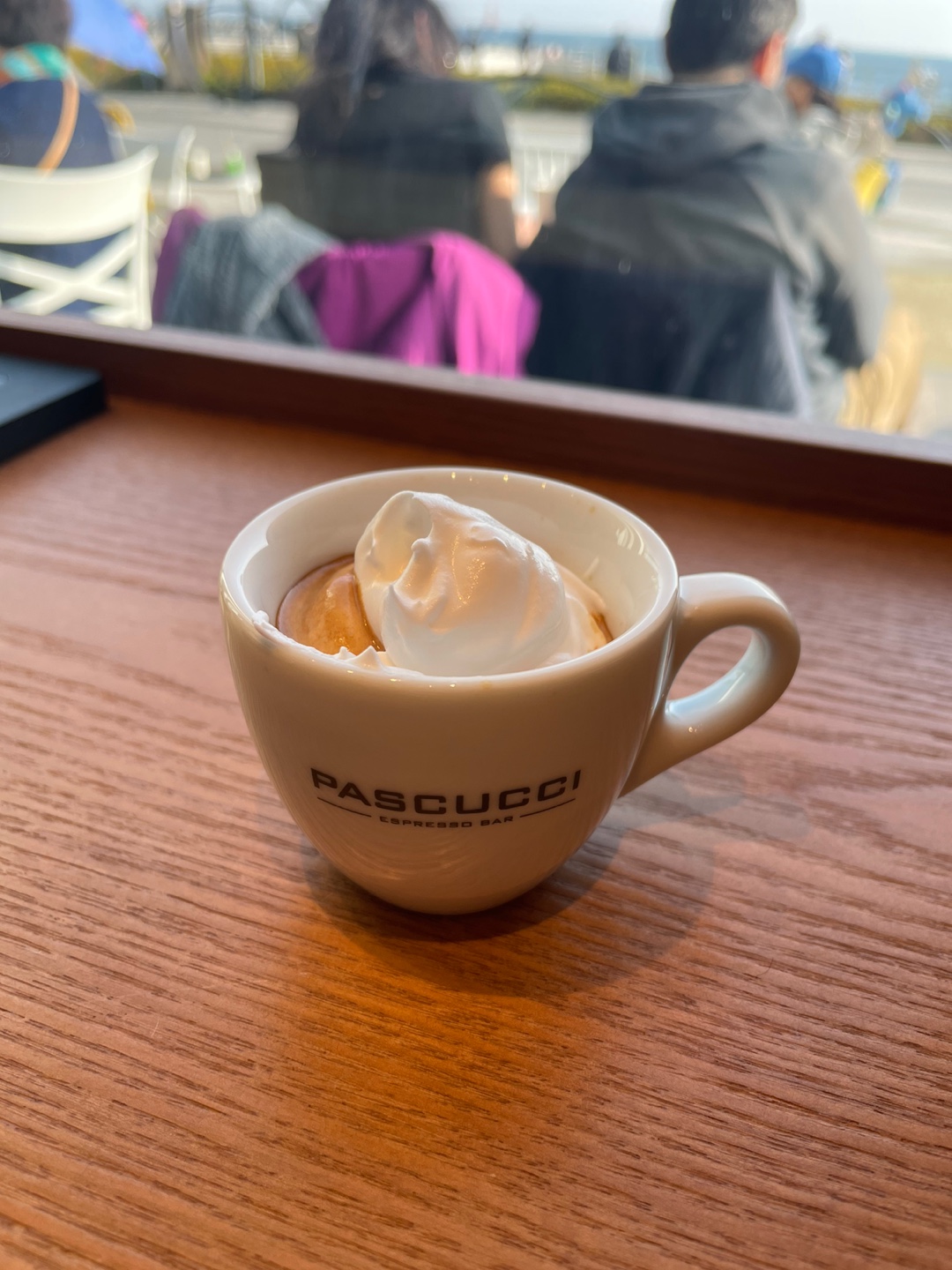 에스프레소 세트는 기존 1샷+ 나는 콘파나로 주문했다. 난 달달이 커피가 좋다. ㅋ 에스프레소원액은 아주 쓰기때문에 달달한 크림과 듬뿍 ㅋ 그리고 추가로 주어지는 에스프레소에는 바닥에 설탕이 깔려있어서 녹여 먹거나 부셔먹으면 좋다.