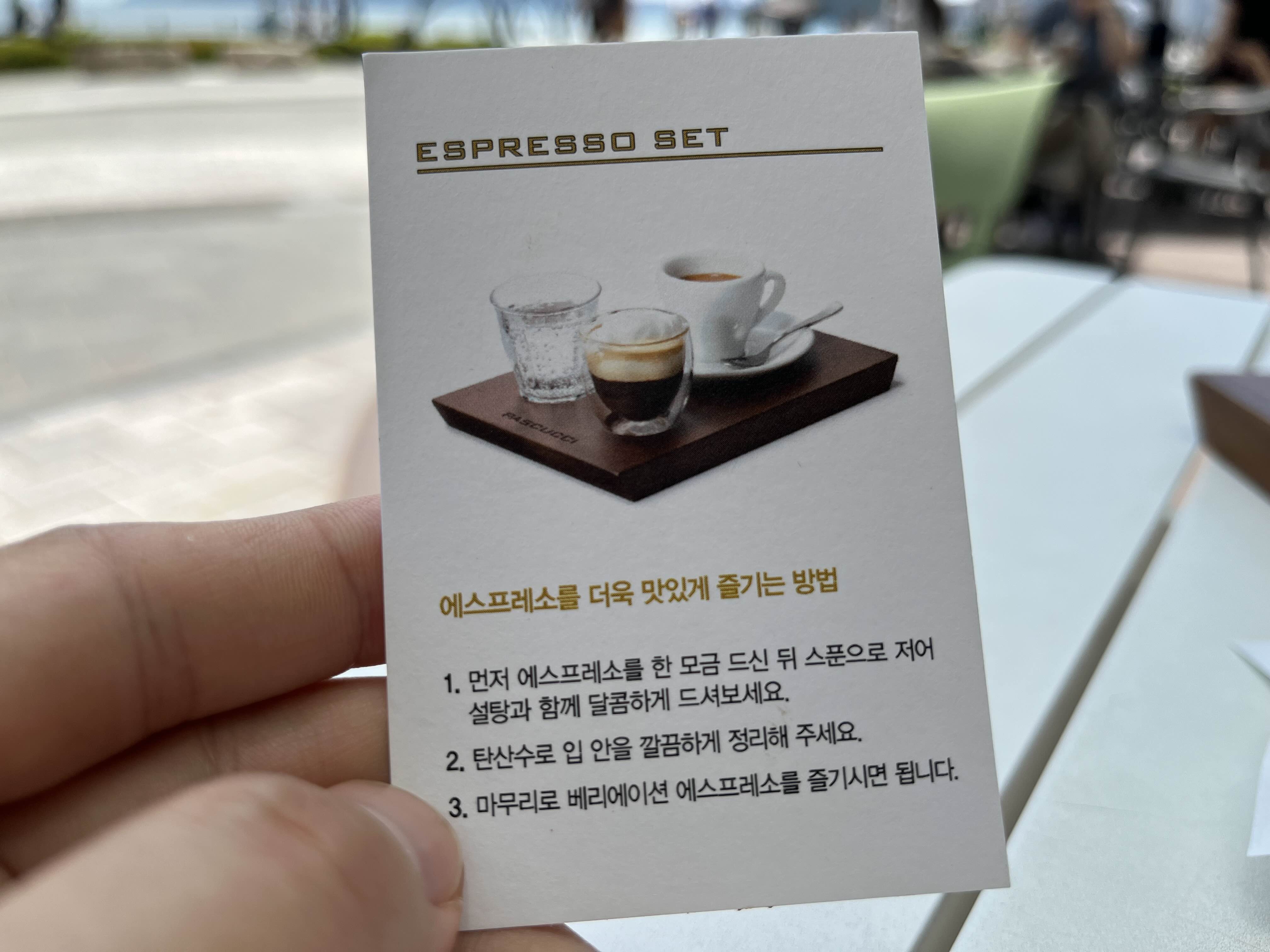 에스프레소를 더욱 맛있게 즐기는 방법이긴한데.. 굳이 2개를 팔아야 하나 싶기도 하고.. 카페인이 강해서 뭔가 취하는 느낌이 팍 옴.!