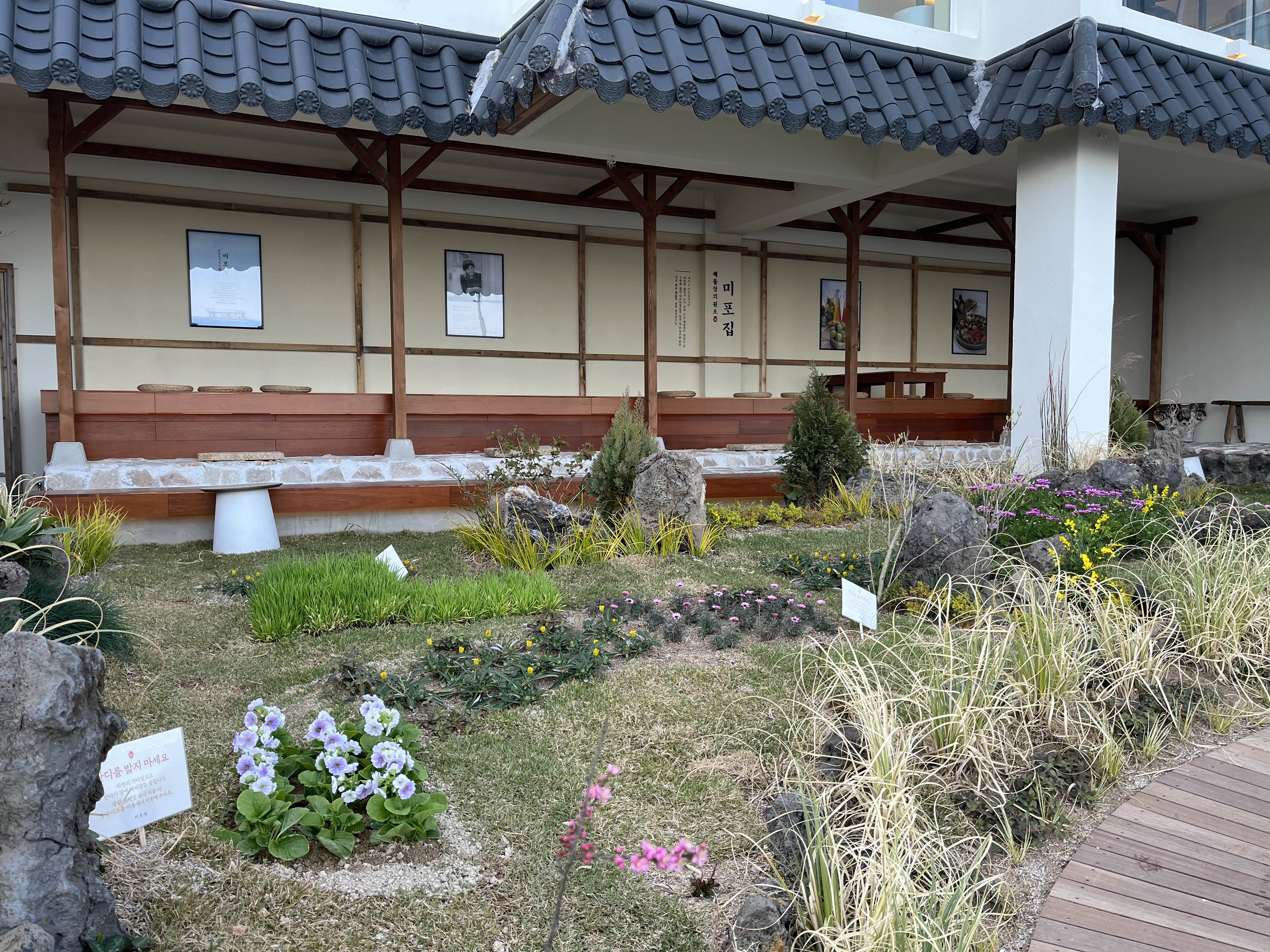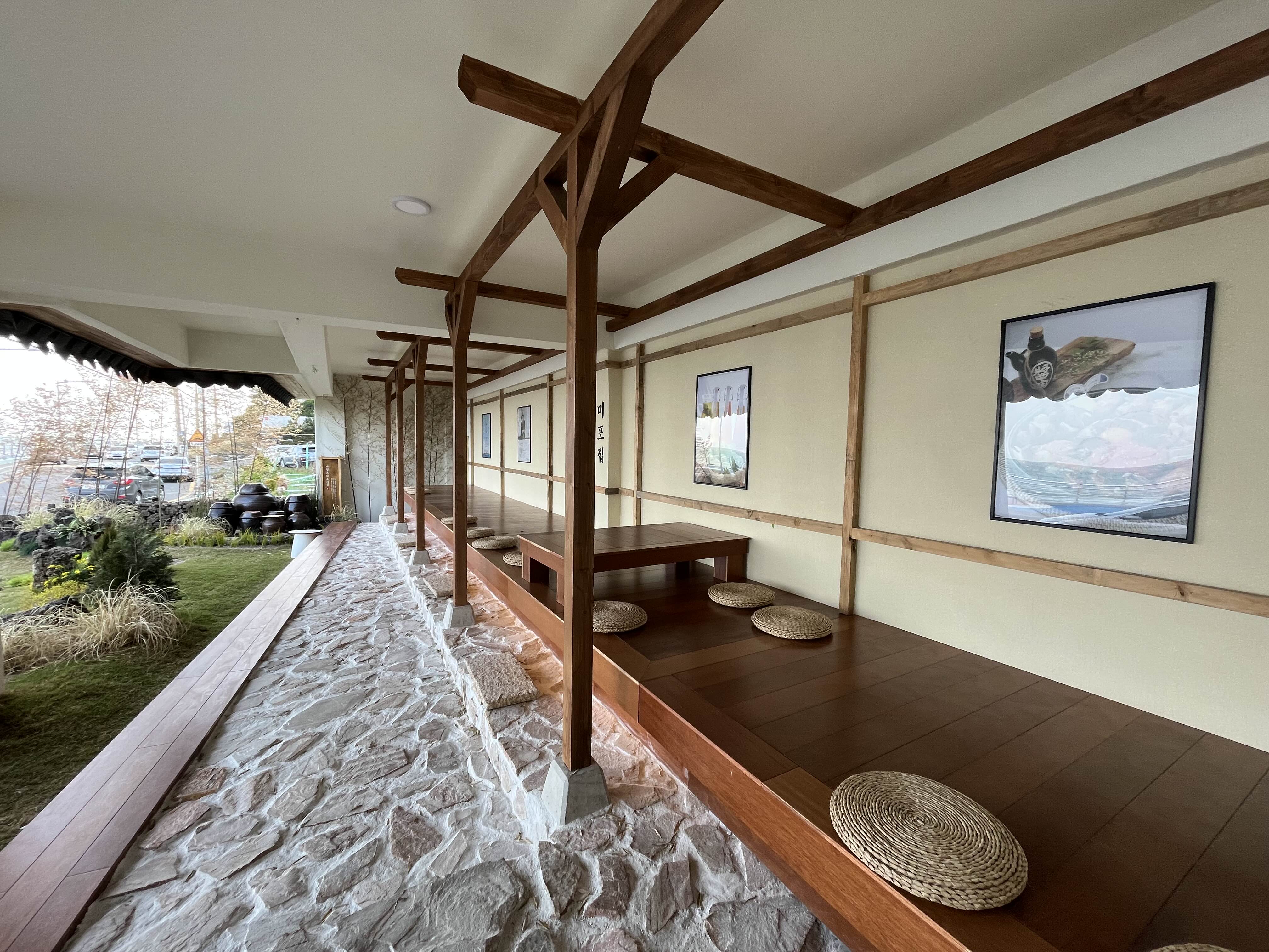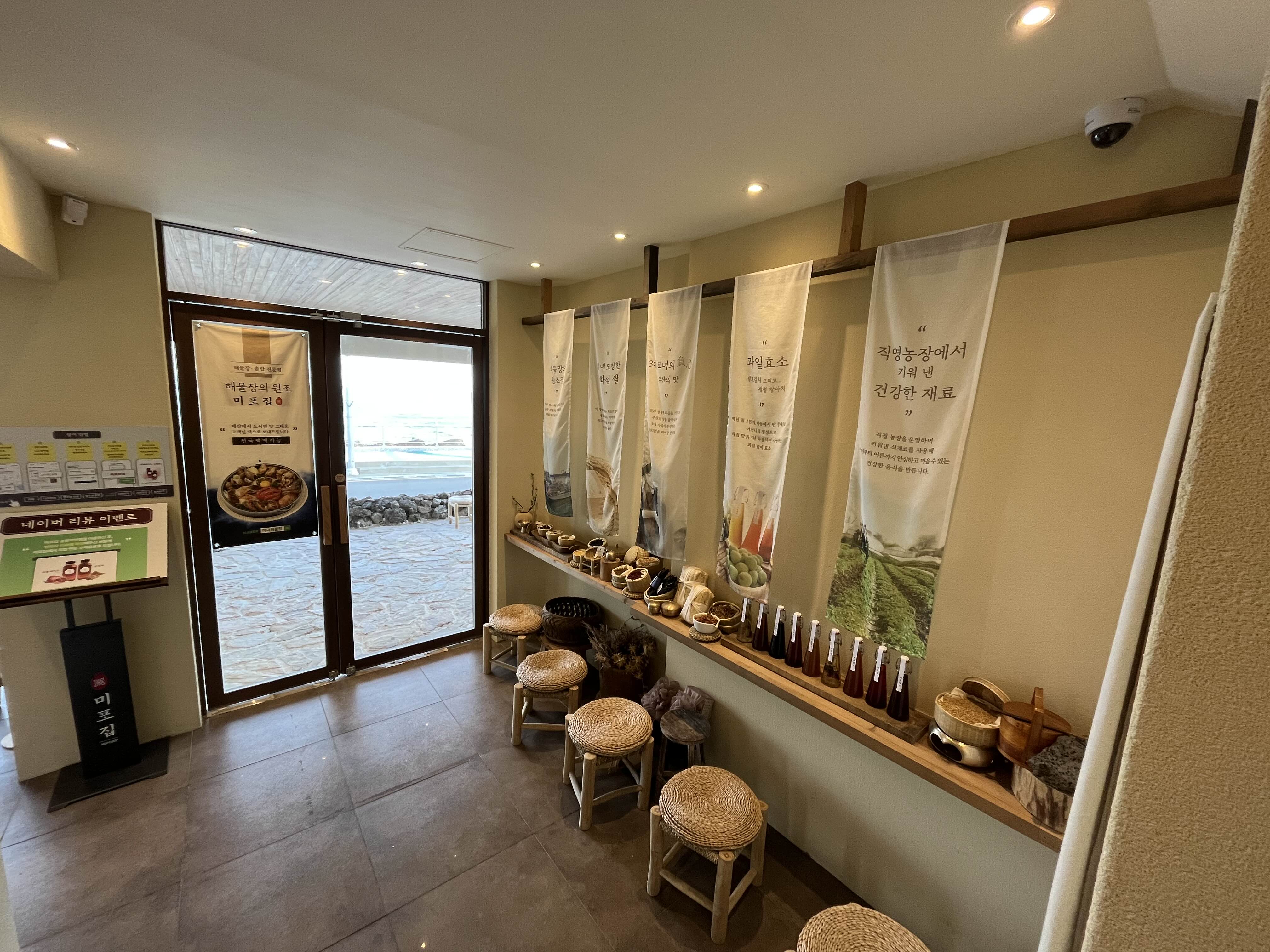 현무암 돌담으로 둘러쌓인 입구에 작은 정원이 있고, 기와가 올라간 처마식의 대기공간에 평상이 있었다. 여름에 바다보면서 평상에 앉아 막걸리 마시고 싶은 제주바다 느낌.! 3층으로 구성되어있고, 운영은 1,2층만 되는것 같다. 화장실은 1층 입구에 있고, 대기석은 입구와 외부 기와식으로 되어있는 평상에서 대기하면 된다.