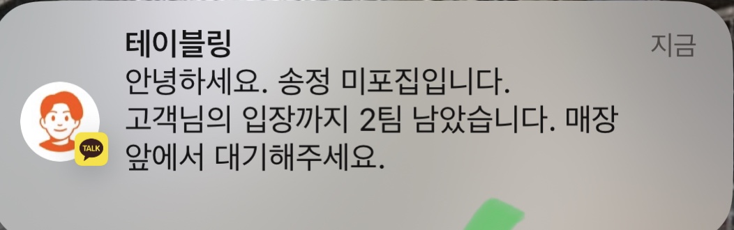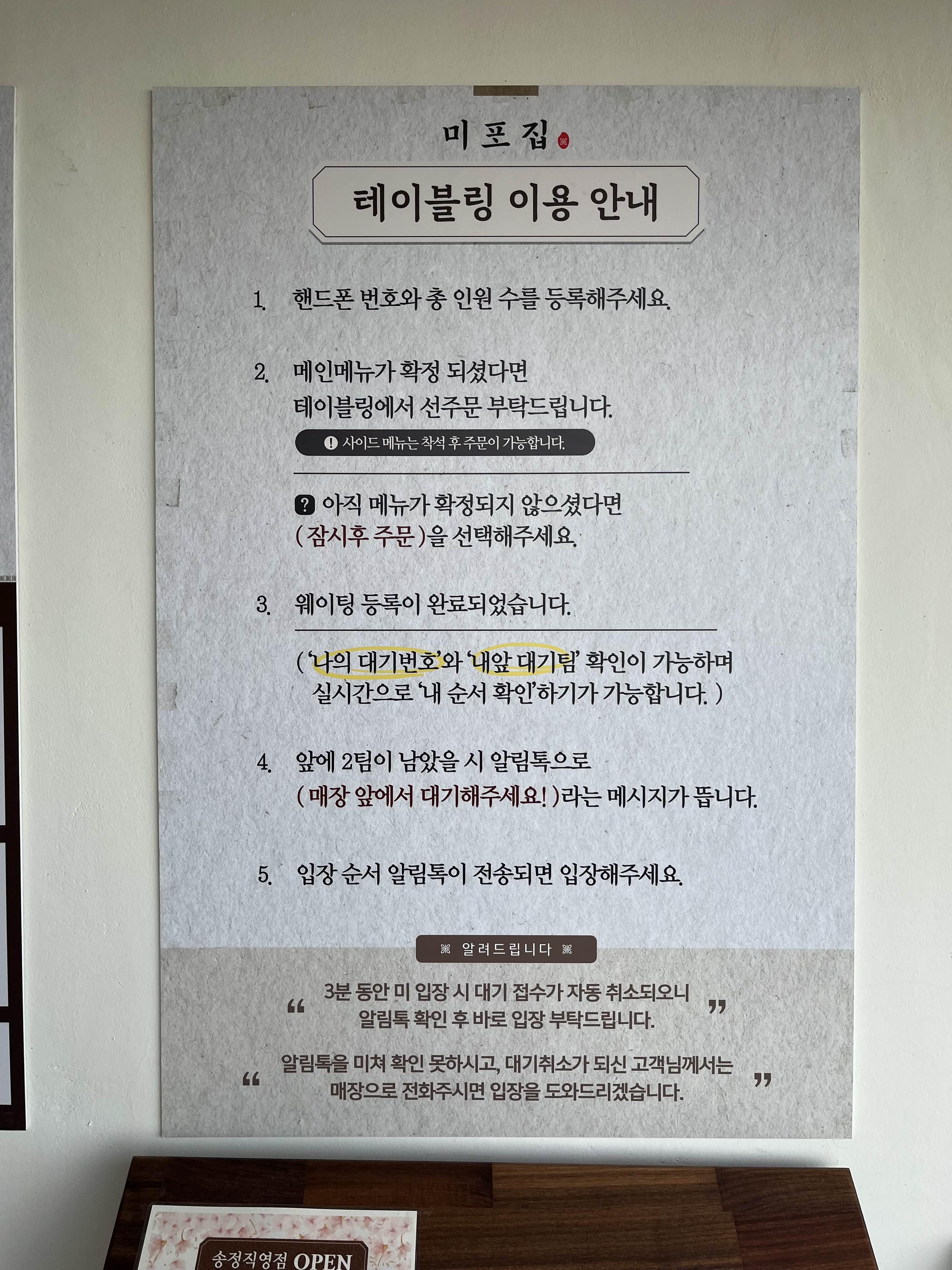 미포집 대기장소 테이블링 내차례가 되어갈때즘 입력하고 이곳에서 대기를 하자.
