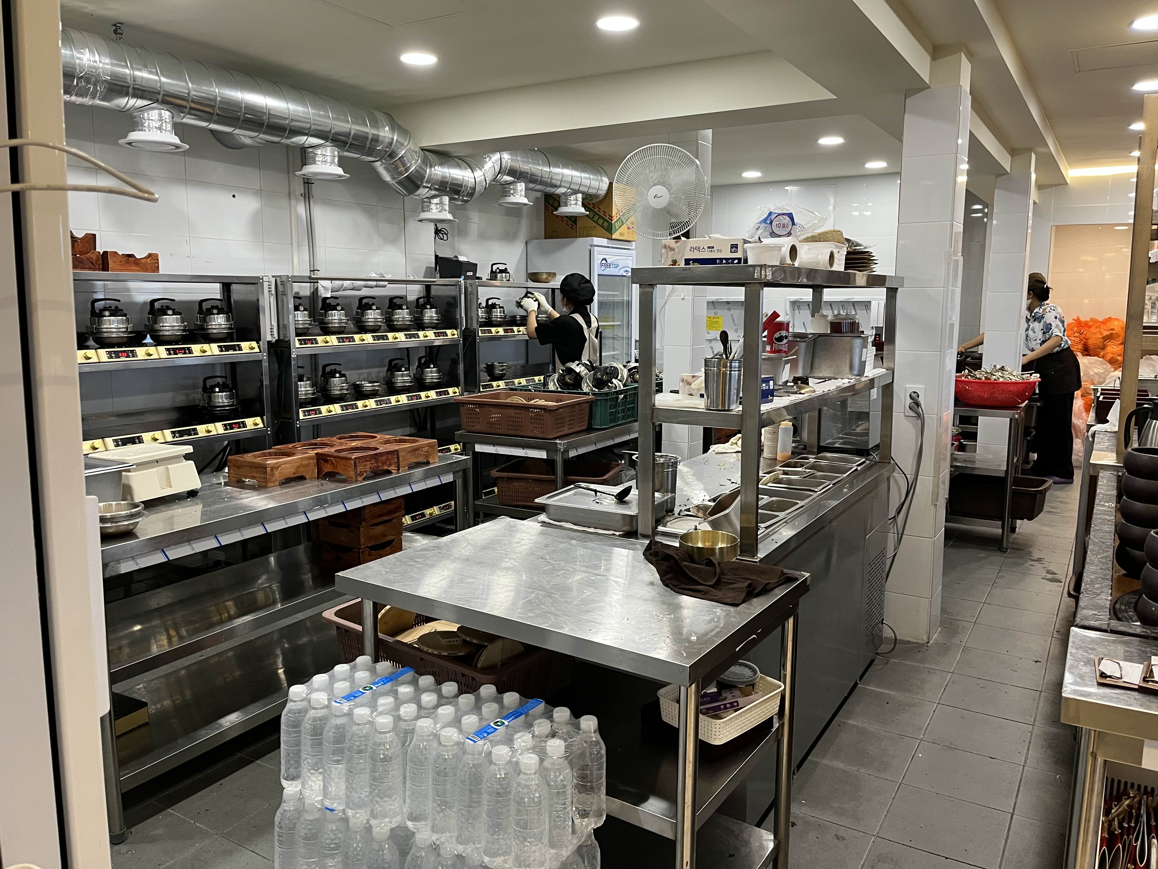 오픈주방 미포집 2층 테이블 그리고 조금은 충격적인 모습을 보았는데, 사실 미포집의 가장단점은.. 밥인데, 무쇠솥밥이 아닌 스테인레스를 이용한 대용량 솥밥을 추구하기에.. 심지어 사진속 솥밥을 만드는분은 외국인… 아무튼 밥에대한 부분은 좀 개선이 필요한듯..