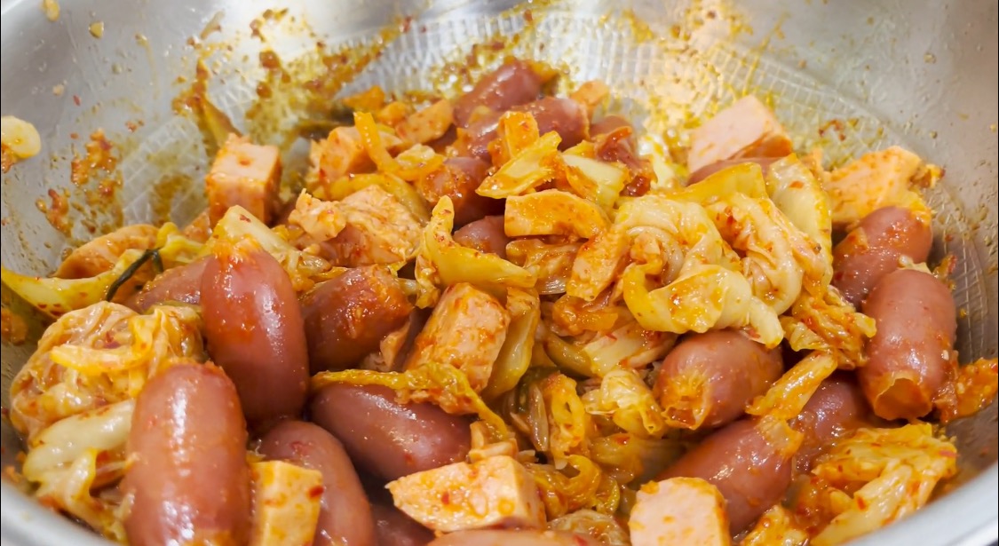 스팸 김치찌개 레시피스팸 김치찌개는 간편하면서도 맛있는 국물요리입니다. 준비물: 스팸 1캔, 김치 500g, 양파 1개, 대파 1뿌리, 다진 마늘 1큰술, 고추장 2큰술, 고춧가루 2큰술, 멸치육수 1.5L, 설탕 1큰술, 소금 약간. 진행과정: 스팸은 두께 약 0.5cm로 썰어둡니다. 양파와 대파는 썰어둡니다. 냄비에 기름을 두르고 스팸, 양파, 마늘, 김치를 넣고 볶습니다. 고추장, 고춧가루, 멸치육수를 넣고 설탕, 소금으로 간을 봅니다. 대파를 넣어 재료가 익을 때까지 끓입니다.