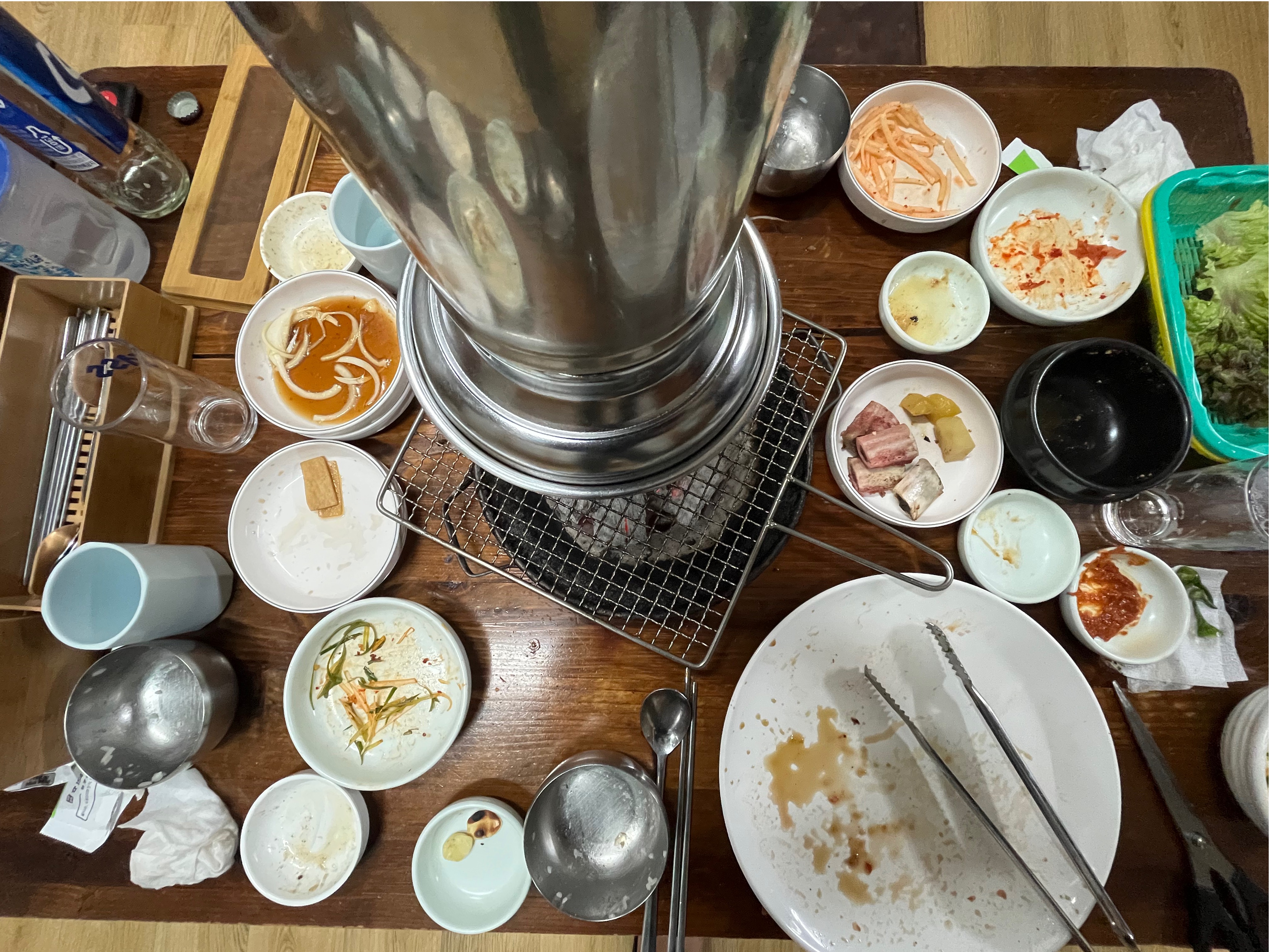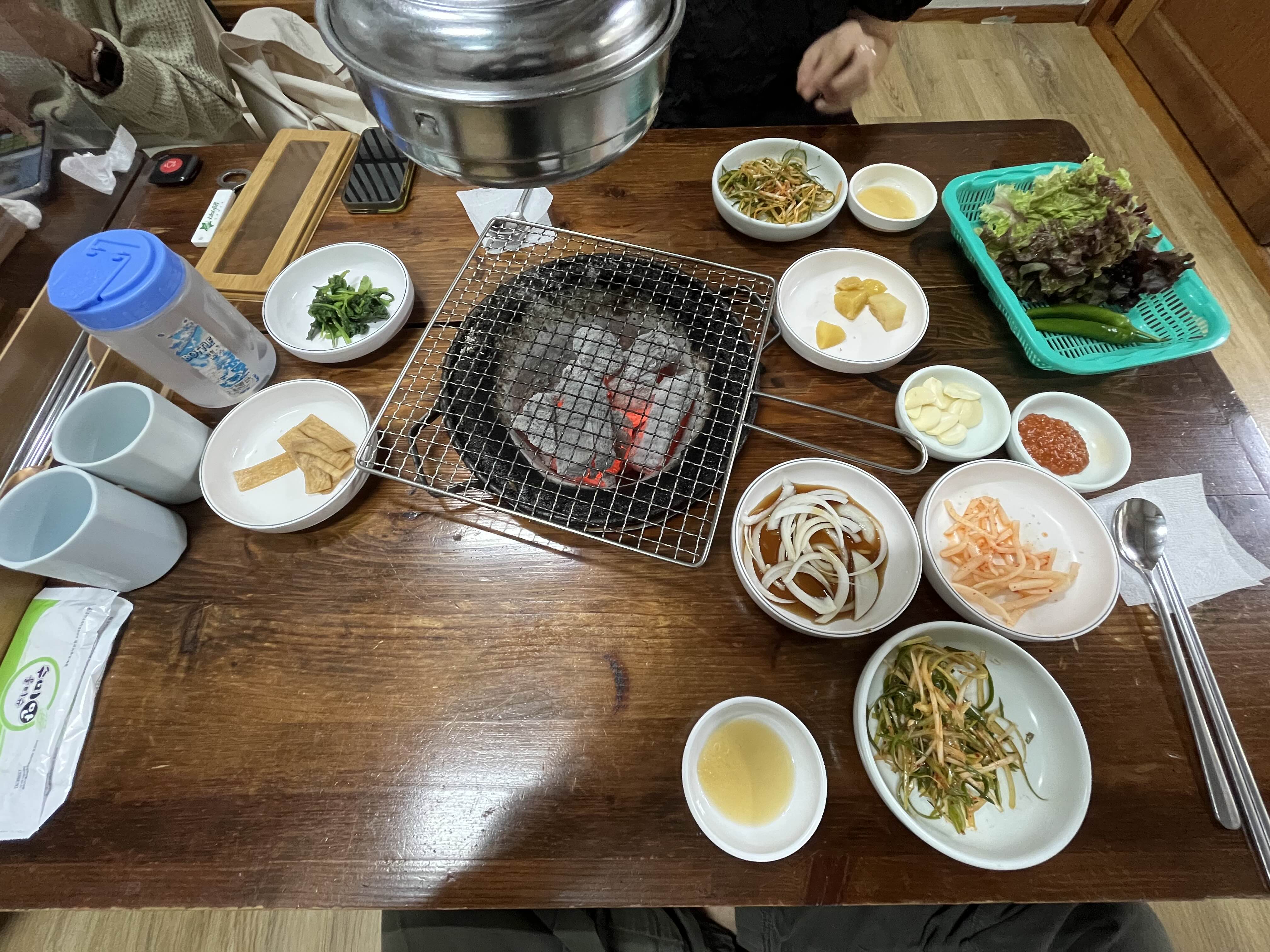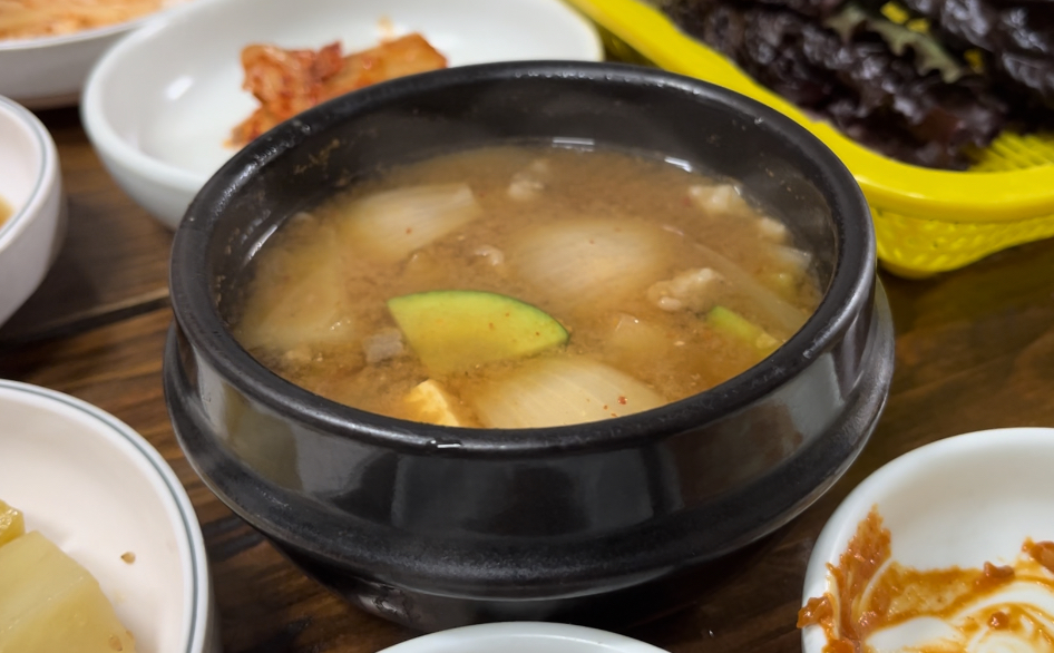 퇴근길 메뉴 : 맛집의정석 생각보다 상차림은 간소했다. 지금은 보이지 않는 김치가 된장찌개때 나오는데 김치는 시작부터 시키는걸 추천! 나는 고기와 밥을 항상 같이먹기에 된장보단 밥을 먼저 추가를 했고, 된장이 나올때 또 밥을 먹었다 ㅋ