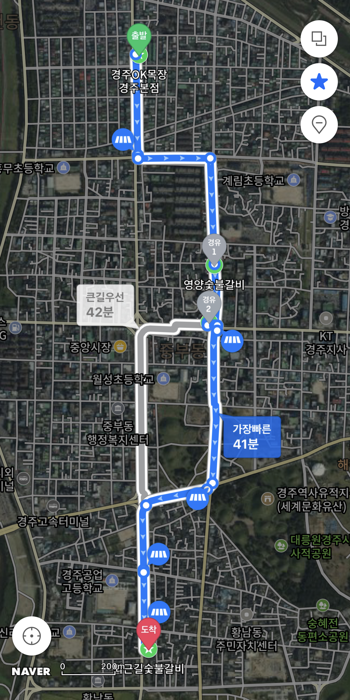 경주유명 고기집4개로 나오는데 Ok목장 영양숯불갈비 반도식당 그리고 퇴근길(기준은 네이버 지도기준 위에서 아래로..) 나도 모든걸 알수 없으니 하나씩 확인을 해보았다. 걸어서다니기엔 무리가 있으니 차로 다 돌아 보았다.