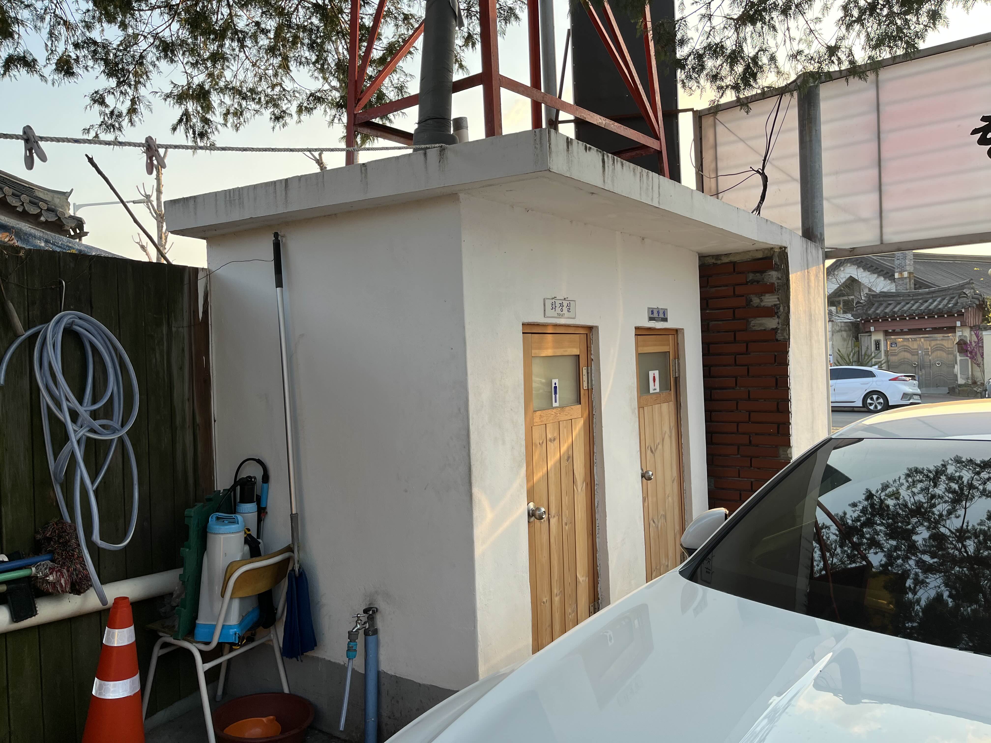 화장실은 실외에 있다.