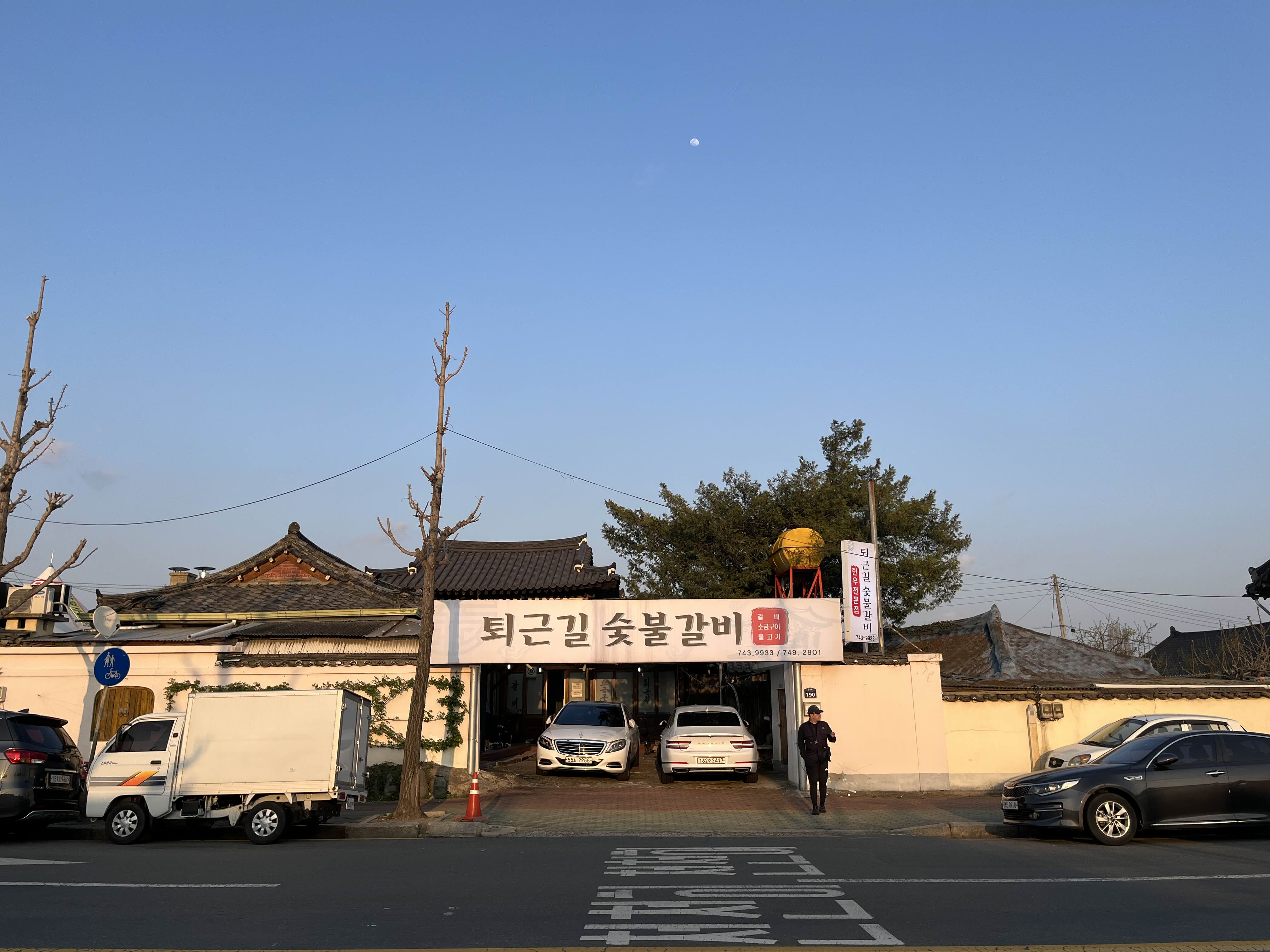 해가 넘어가는 시간에 도착 4월의 어느날 - 6시정도 일듯 앞서 가게들을 둘러보고 난 뒤 도착한 시간이 오후 6시 ㅎㅎ 이전에 이곳을 오기위해 사람들이 많은곳을 지나왔는데 알고보니 황리단길 ㅎㅎㅎ 사람들이 너무 많아서 차랑 치게되면 황천길을 갈듯.. 아무튼 “퇴근길”에서 밥묵고 황리단길은 코스이다! 아니면 반대로해도 좋을듯 하다.!