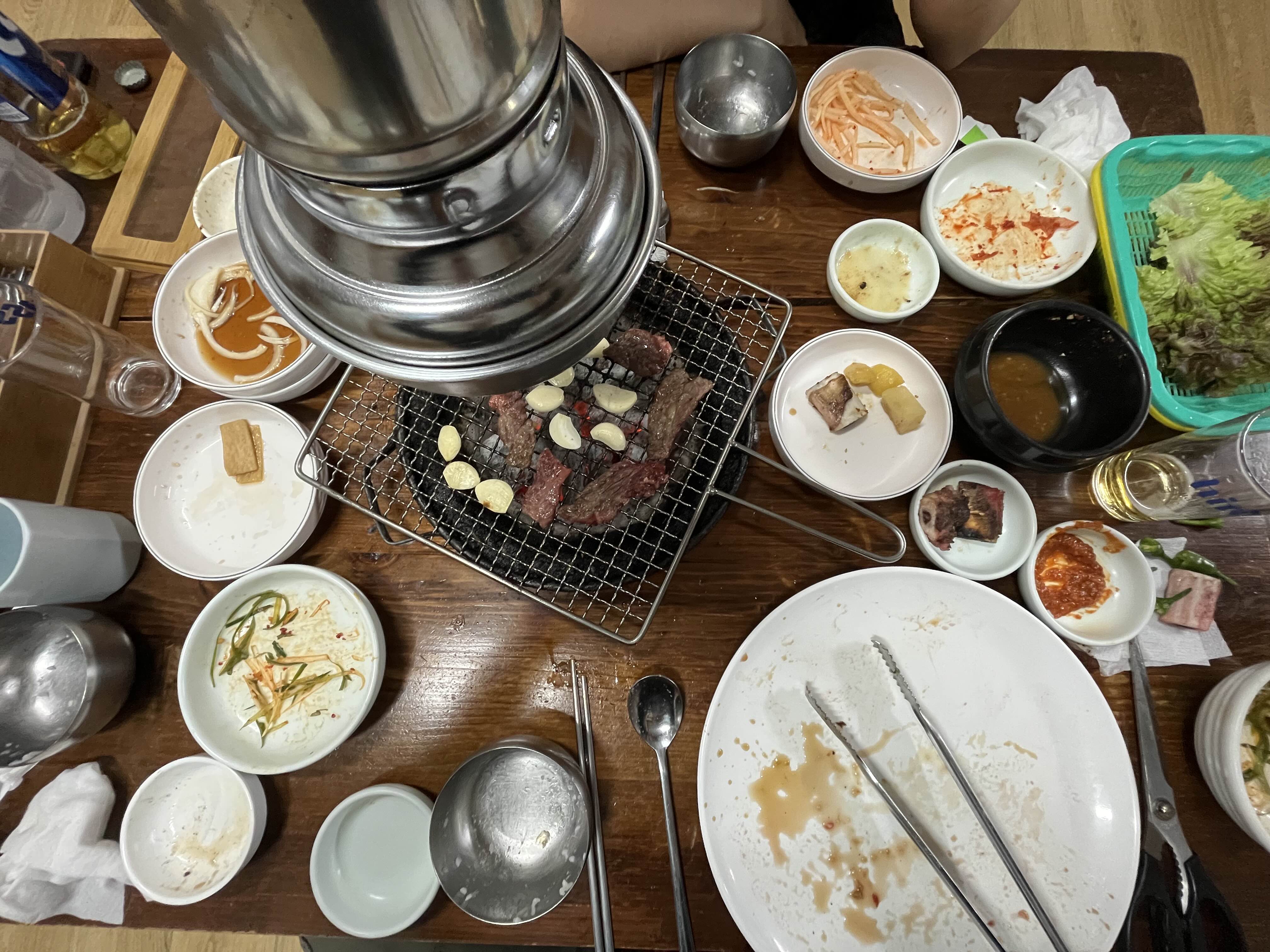 다음고기는 불고기와 소금구이로 주문 하였다. 상추와 밑반찬을 많이 리필하였고, 이번에는 된장도 함께 추가하였다. 야채들도 신선하고 마늘도 잘 구워먹었다. 한우의 3종류 고기를 먹고 보니 메뉴판 제일 상단의 불고기가 최고였다. 와이프는 코스트코 불고기에 조금 질린감이 있어서 불고기란 단어를 생각하면 다른 스타일의 고기로 오해했다. 하지만 불고기를 1나 시킨걸 후회해서 소금구이를 바로 양념화 했다.(어치피 즉석양념이기에.. ) 갈비도 좋지만 불고기를 강추!! 영양숯불갈비도 양념을 추천하였다!!